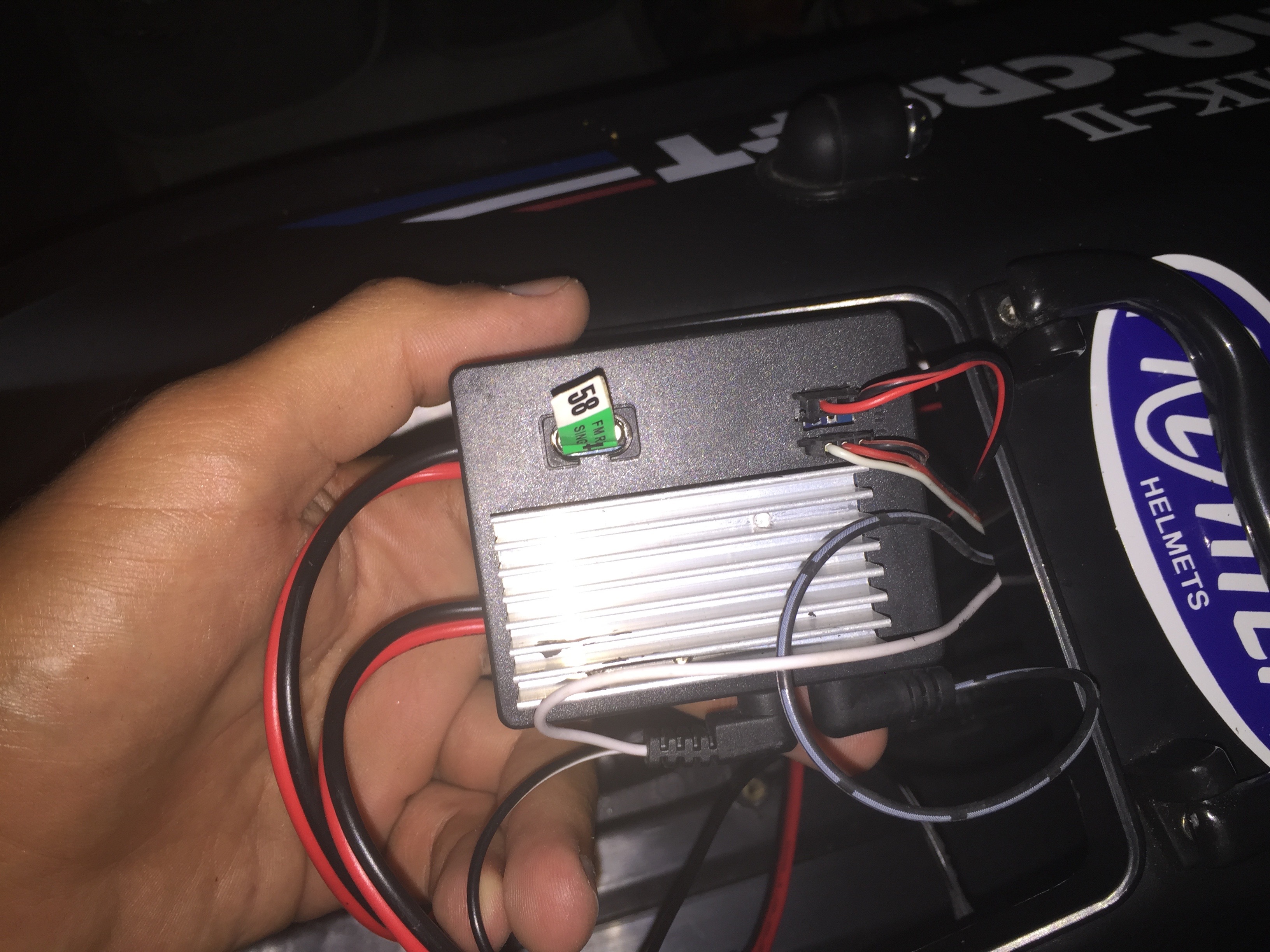 scatolina con ricevente trasformatore credo e spinotti delle luci e antenna