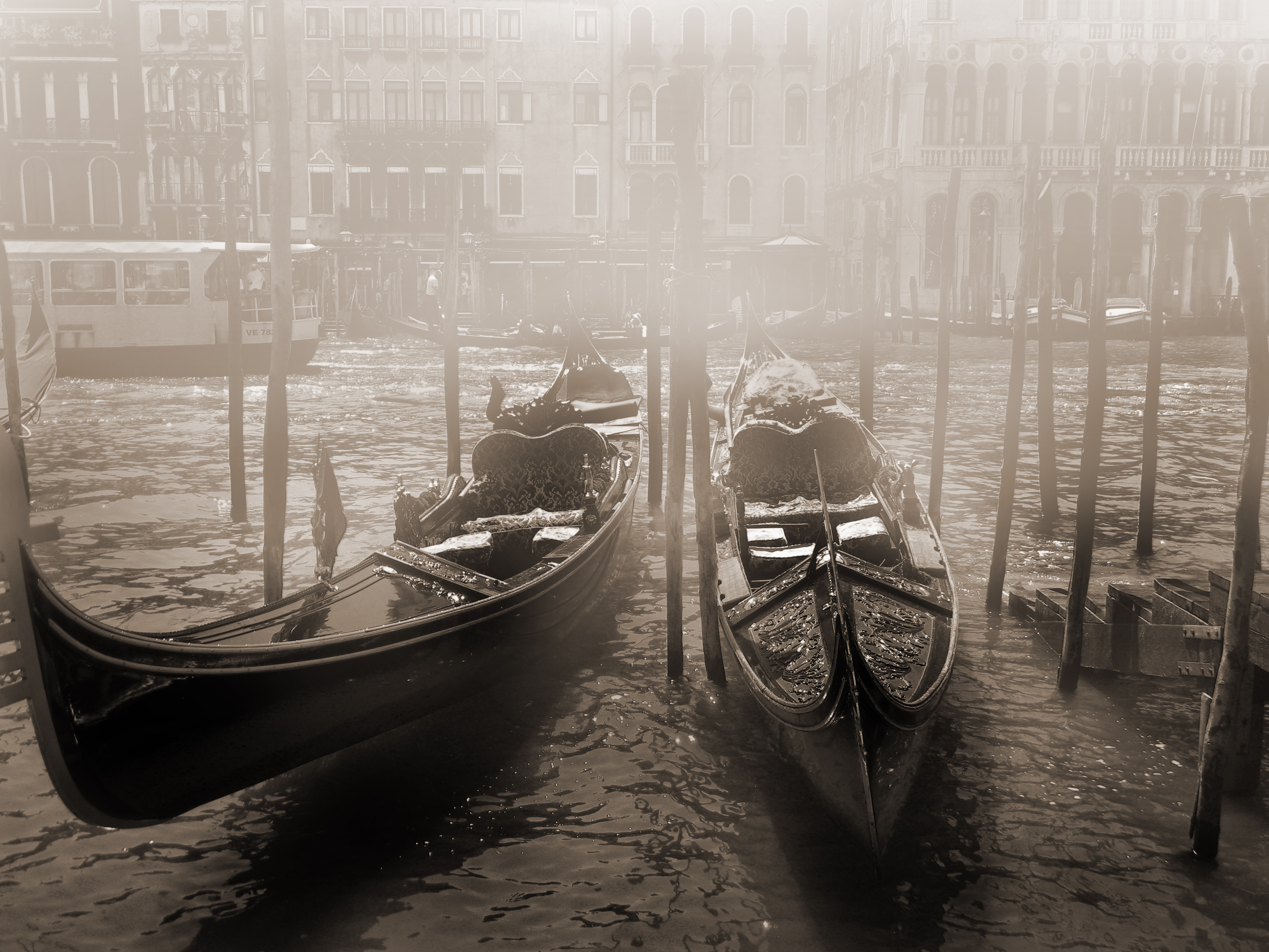 Io ho pensato di rendere ancora l'atmosfera tipica veneziana con un po di bella nebbia con Photoshop CS4 e poi di portare con Photoshop Lightroom 3 la temperatura a 3400 gradi kelvin... e questo è il risultato...