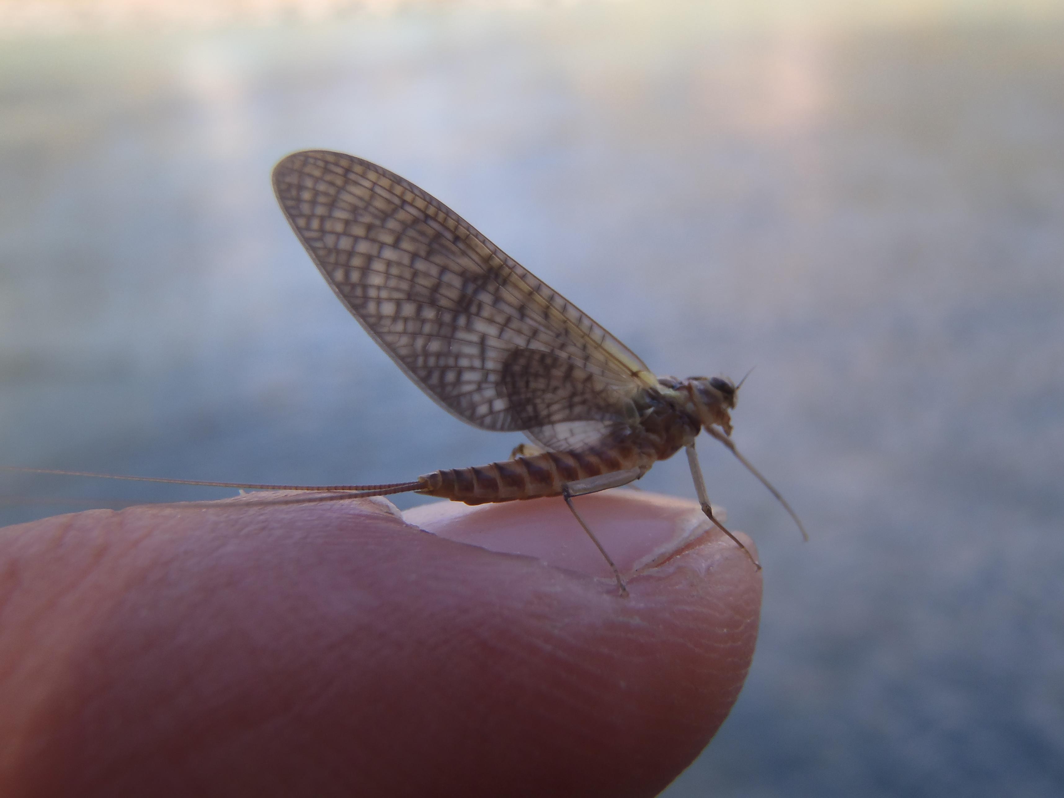 ecco 2 tra gli insetti principali della pesca a mosca....Effimera "generica" (ce ne sono decine e decine di tipi) e un Tricottero o Sedge