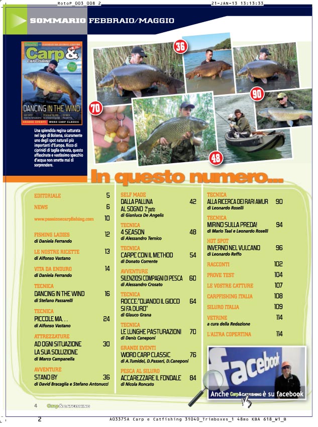 COPERTINA 13° NUMERO DI CARP & CATFISHING SOMMARIO 13° NUMERO DI CARP & CATFISHING EDITORIALE 13° NUMERO DI CARP & CATFISHING Si ringrazia Alfonso Vastano, Daniela Ferrando, Stefano Passarelli, Edilservice e tutto lo Staff di Carp&Catfishing per la collaborazione!