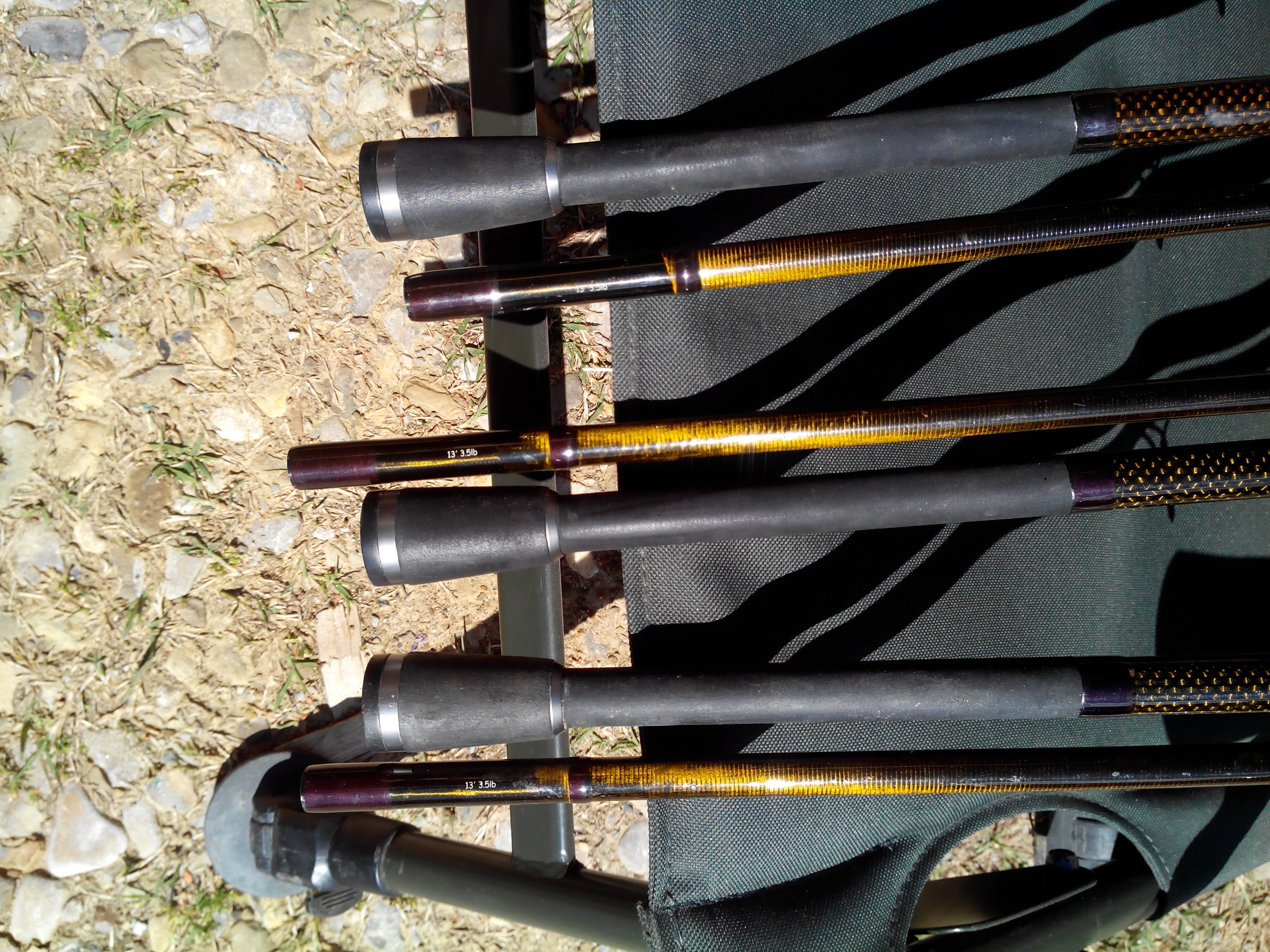 canne 13 piedi 3,5lb dal fusto sottile,anelli in sic,porta mulinello fuji.Canne parabolico progressive, perfette con all'attivo pochissime pescate chiedo 90euro luna più 10euro di spedizione.Per eventuale visione e consegna a mano zona arezzo valdarno
