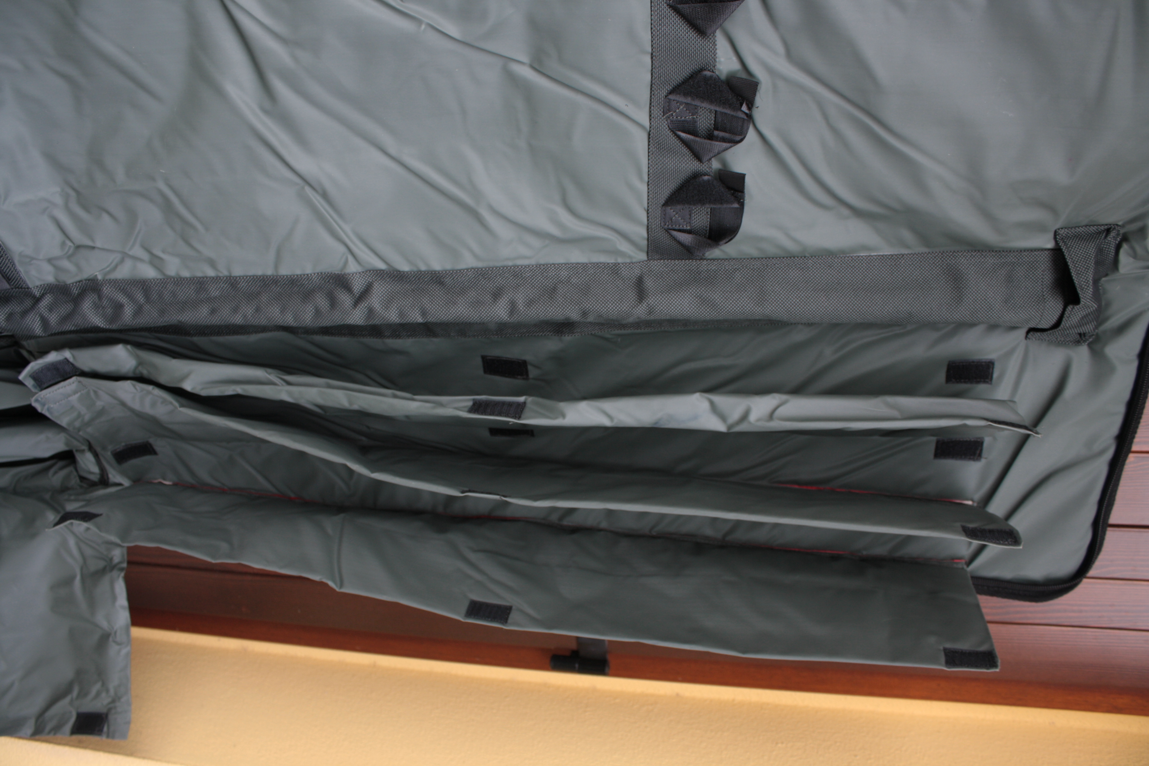 vendo questo fodero della milo da 12 piedi 3 canne montate e 3 smontate piu 2 sacche laterali,tracolla piu maniglia per il trasporto,il tessuto e antistrappo e impermeabile,molto imbottito.....