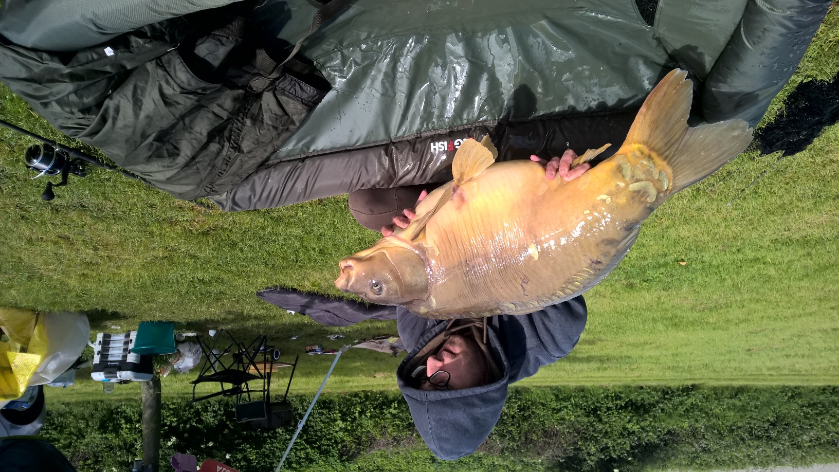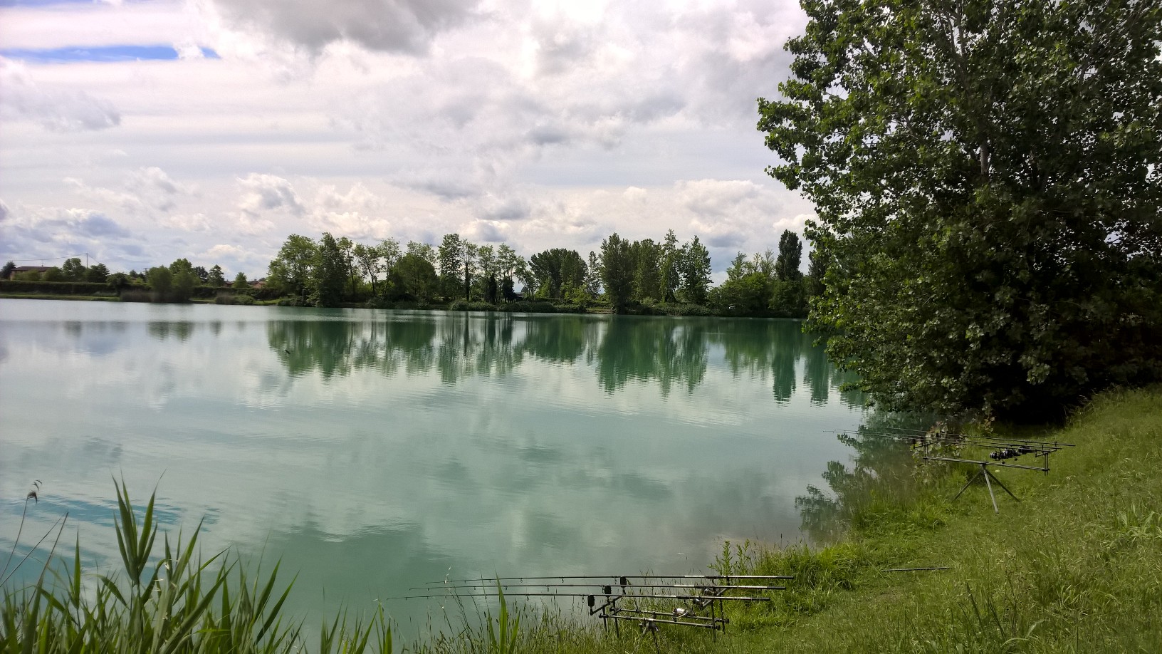 Appena arrivati sul posto (domenica intorno le 17) ho montato la tenda in quanto eravamo sotto un bel temporale alle ore 18:00 cessata la pioggia ho lanciato subito le canne (perché il tempo non permetteva per niente bene), e pasturato con cobra una decina di palline a canna.