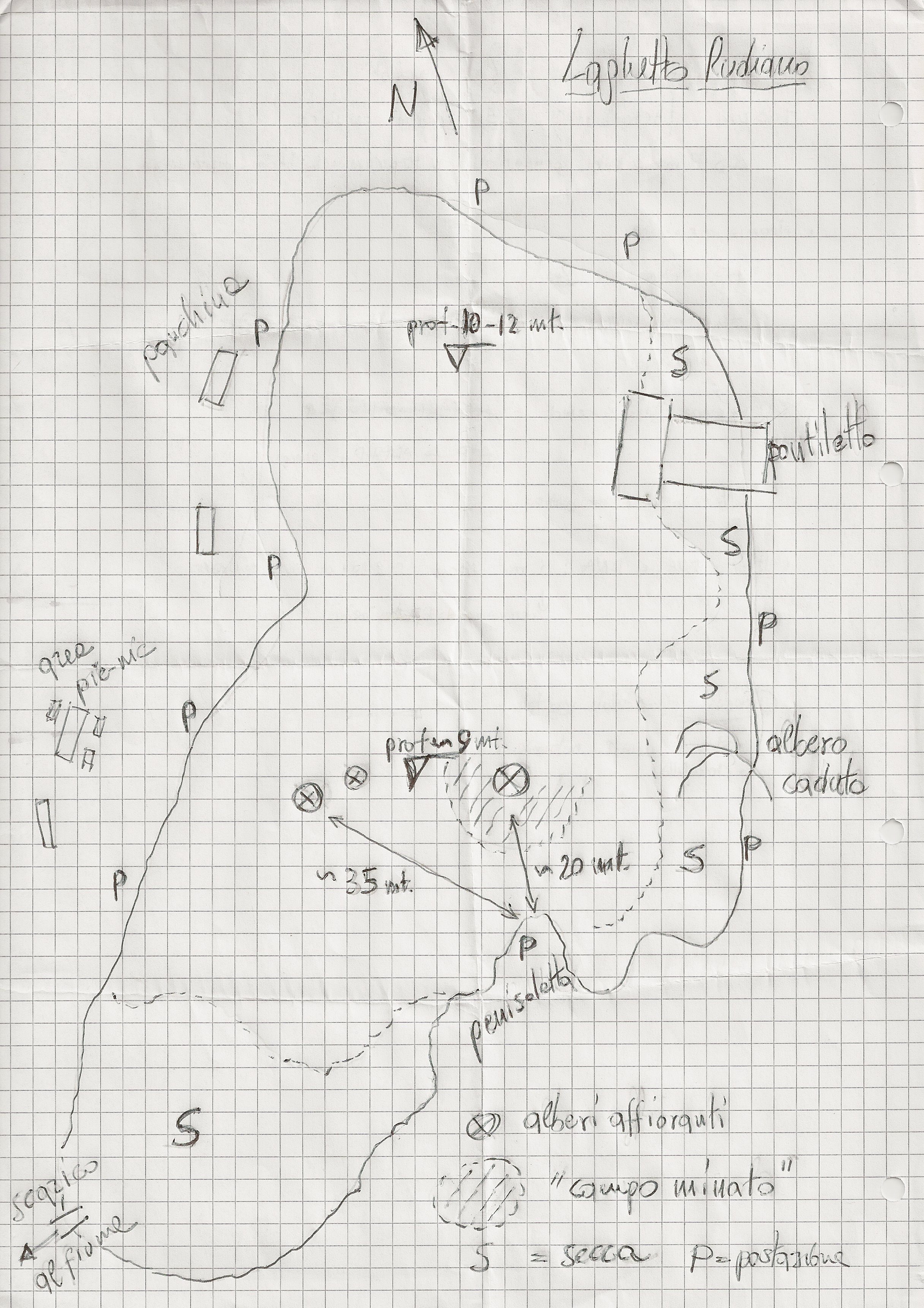 Ecco la piantina del laghetto. Si commenta da sola ma aggiungo come informazioni importanti: