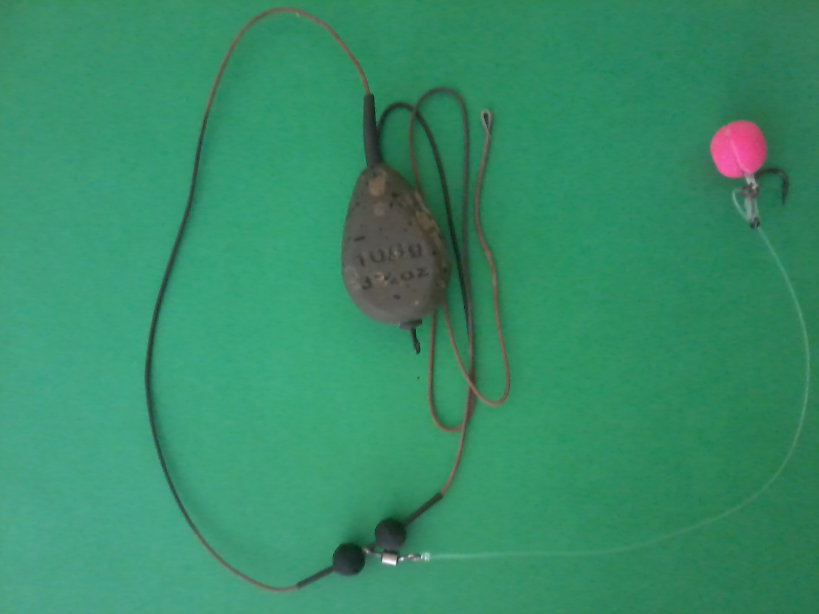 il piombo che hai usato è ideale per una montatura "inline" mentre per la montatura che hai creato tu "helicopter rig" devi usare i piombi a oliva con la sua apposita girella che vai ad agganciare al leadcore (asola su asola) e non infilandolo direttamente nel piombo
