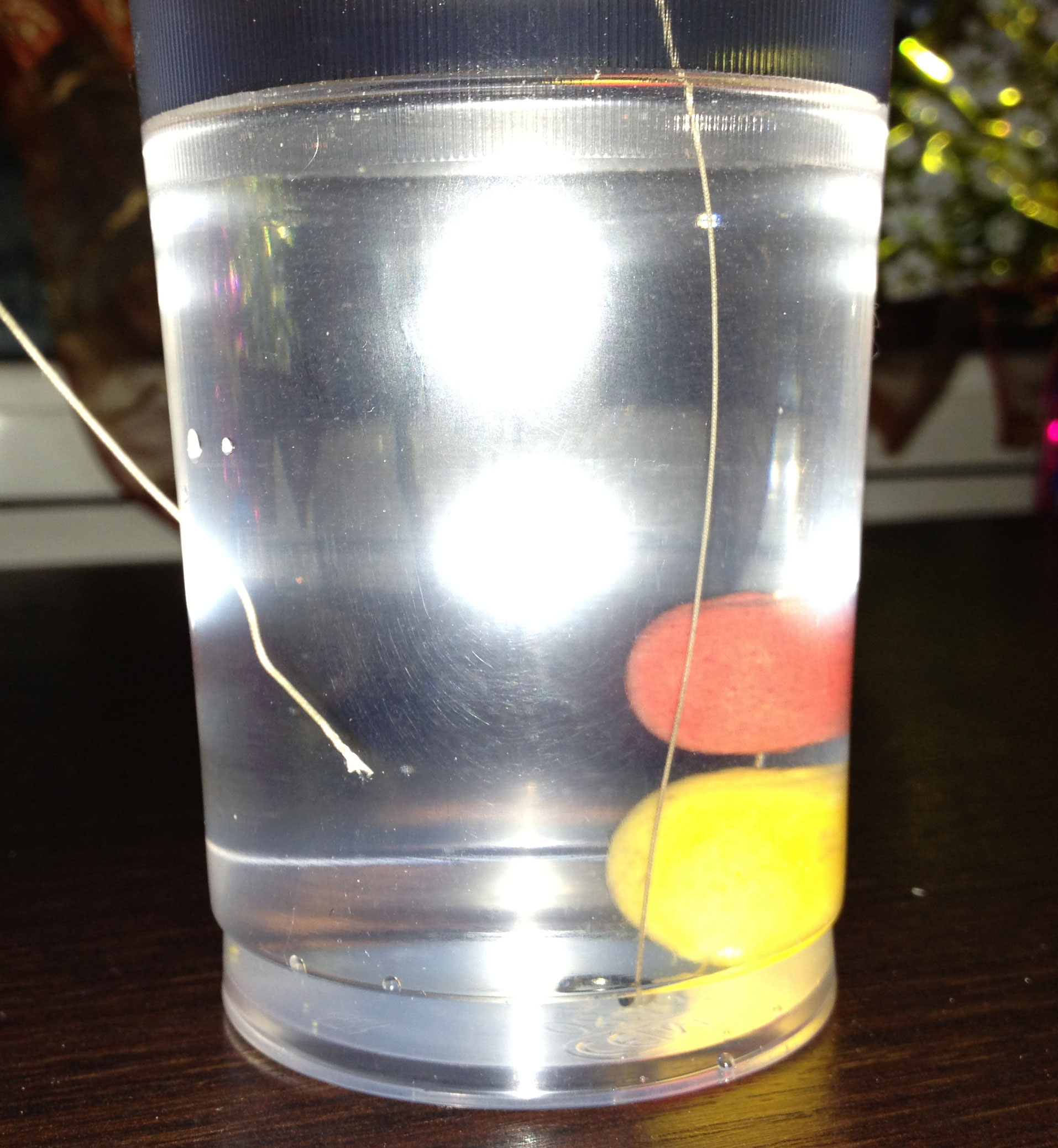 secondo me l'unica cosa puo essere la distanza tra le 2 palline...poi magari e solo molto accentuata dall'acqua e dal vetro, ma ti consiglio comuque un piattellino sotto l'esca per evitare che scivoli sull'hair....