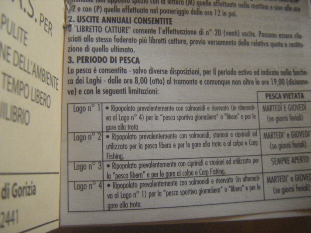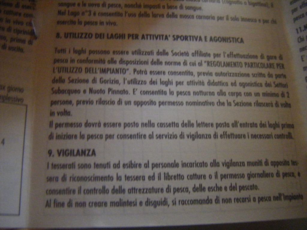 Ciao Aneste!Sei un grande!Questo tesserino e' uguale a quello che facevo io nel 2006.quindi significa che non e' cambiato nulla e che si puo' pescare ancora di notte e che il regolamento e' uguale a 4 anni fa'. era quello che volevo sapere.Grazie mille!!!Ciao,Ricky. :D