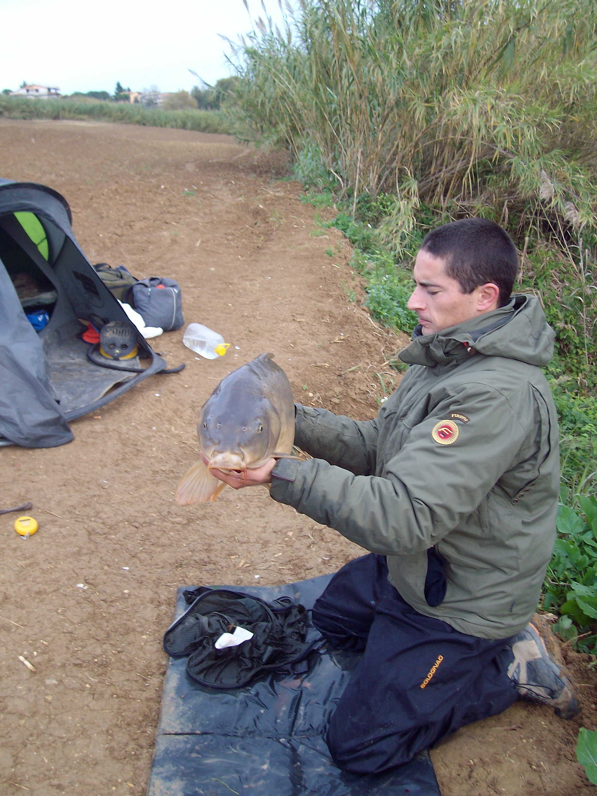 Finalmente sono riuscito a scappottare questo lago. Sono andato a pasturare 3 volte durante la settimana con boiles self-made. Venerdi pomeriggio alle cinque ero in pesca nei due punti preventivamente pasturati. Alle undici dopo diversi bip arriva una bella partenza, purtroppo si incaglia subito sotto i canneti e si slama. Ore 7:30 bipppp biiiiiiiiippppp, dopo una discreta lotta di dieci minuti l'ho messa a guadino, 13,5kg.