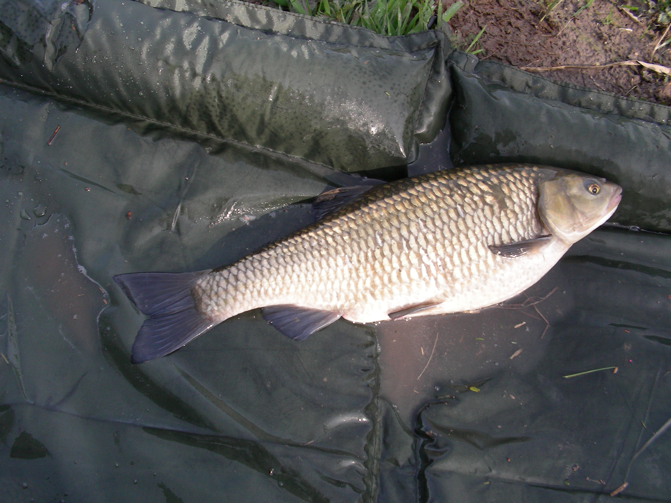 ...le ho fatto giusto una foto al volo perchè era sfiancata, deve aver combattuto contro quel ramo per almeno 10 minuti... e così si è risolto il mio "battesimo", facendo ossigenare questo bel pesce per almeno un paio di minuti... non si riprendeva quasi più, ma poi con calma se ne è andata via guizzando tra le alghe! Meno male... allora, visto che le palline al pesce piacciono, guardo l'ora e decido che c'è ancora tempo per lanciare sullo stesso posto non si sa mai... lancio e plof! Affondafilo, tendifilo... bip bip... ecco sistemato tutto... e appena finito decido di iniziare a chiudere almeno delle canne e allora recupero quella di sinistra con le palline fruttate, tempo di prendere il piombo in mano e... parte la stessa canna appena lanciata!! Butta tutto per terra e dopo poco eccola qua...