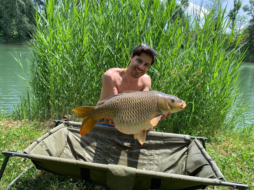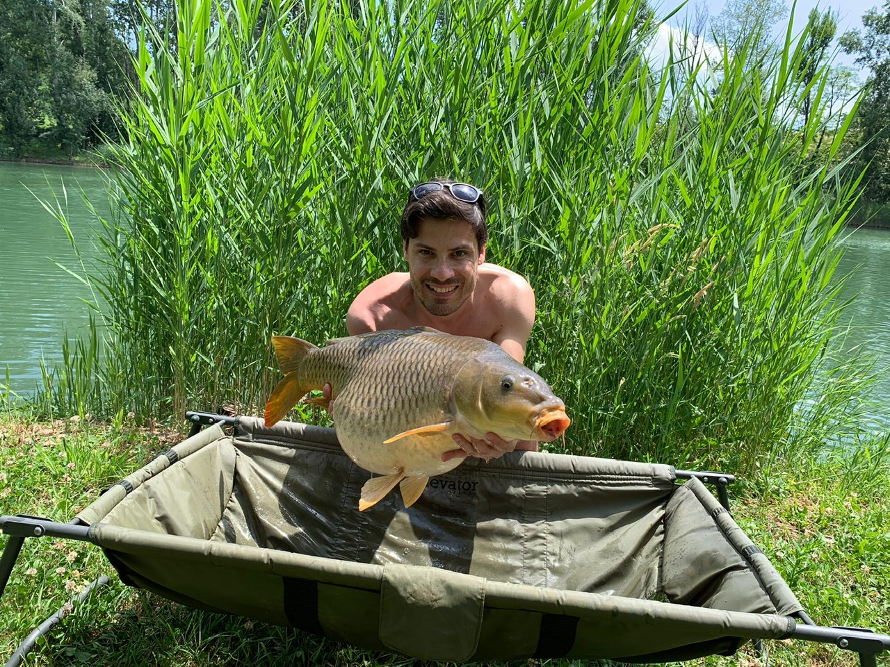 Iniziamo i lavori quando a me parte nuovamente una canna. Ferro, ma capisco subito dal combattimento che c'è qualcosa che non va...se si tratta di una carpa è davvero strana. Infatti è un pesce gatto, attratto dalle mie boiles speziate :grin: portato a guadino, rilasciamo il gattone e continuiamo il nostro via vai di carico e scarico.
