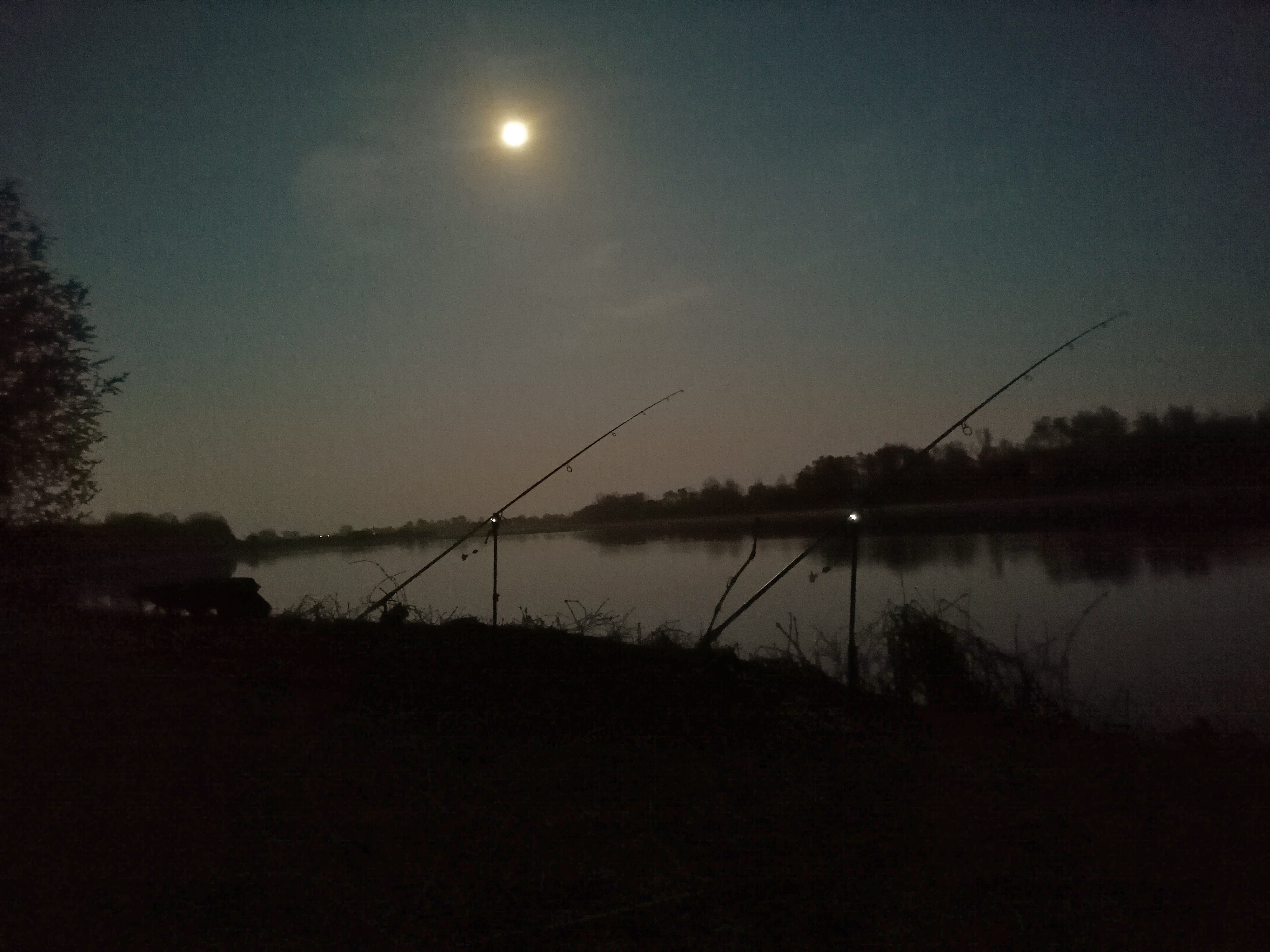 finalmente riesco a convincere mio papà per andare a fare una pescata di notte, la prima notte di quest'anno e decido di andare in un posto nel quale so che i pesci sono molto più attivi nelle ore notturne, è un tratto del grande fiume dove 100 metri a monte c'è una rientranza con un giro d'acqua e quindi un posto in cui le carpe sicuramente andranno ad alimentarsi.