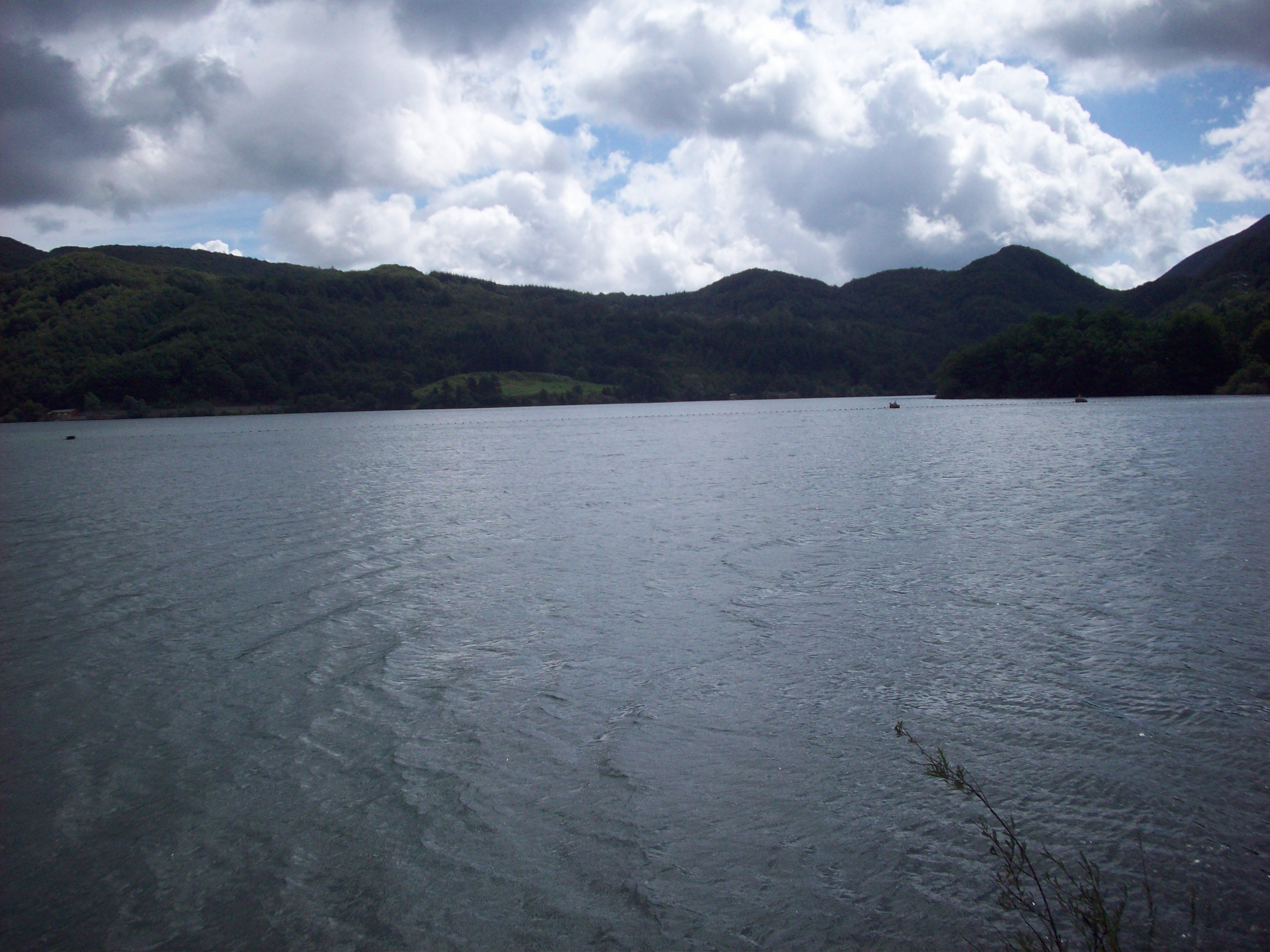sulla centralina... e dopo un combattimento davvero impegnativo arriva lei... che dire ero al settimo cielo.... avevo già scappottato in una location strepitosa ma difficilissima la prima volta che ci pescavo... Mi convinco che lo spot è buono mi rimetto a letto aspettando il socio la mattina presto del giorno dopo... puntualissimo alle 6,30 è arrivato.. Si mette in pesca pure lui..... usando un'altro tipo di strategia... sca che si rileva pure per lui vincente e difatti all'ora di pranzo arriva il bipppppp e ci troviamo lei non è uno spettacolo di pesce.....!!! dopo purtroppo si incomincia ad alzare un vento fortissimo e incominciano a tirare acqua in maniera pazzesca e questo blocca un po' il lago... difatti appena si calma il vento e alle 19,30 circa... sento unaltro bippppppp sulla mia canna corro a ferrare e attaccato avevo qualcosa o di davvero grosso o di davvero fortissimo.. mi si flette tutta la canna ma purtroppo dopo 15 secondi di combattimento mi si slama... stavolta ha vinto lei..... mi rimetto in pesca pappa 2 chiacchiere con i nostri vicini.. e poi stracotti da un vento che non ci ha abbandonato mai nanna ore 0,30 bippppppppp... stavolta vinco io.. mi sono detto... lottatona sottoriva ed è arrivata lei il resto della notte passa tranquilla... il giorno dopo purtroppo dobbiamo partire e lasciare seppur molto contenti e soddisfatti da come abbiamo affrontato questo bacino.. il socio parte alle 11 e io alle 13.. il lago comunque si era bloccato causa vento e aspirazione forte dell'acqua... che dire... io mi sono innamorato di questo posto.. seppure con un regolamento allucinante ti lascia scenari da brividi... vedete sotto..... uno sogno di posto... ringrazio ovvimanete il buon maver per la compagnia.. e che dire alla prossima... by discus