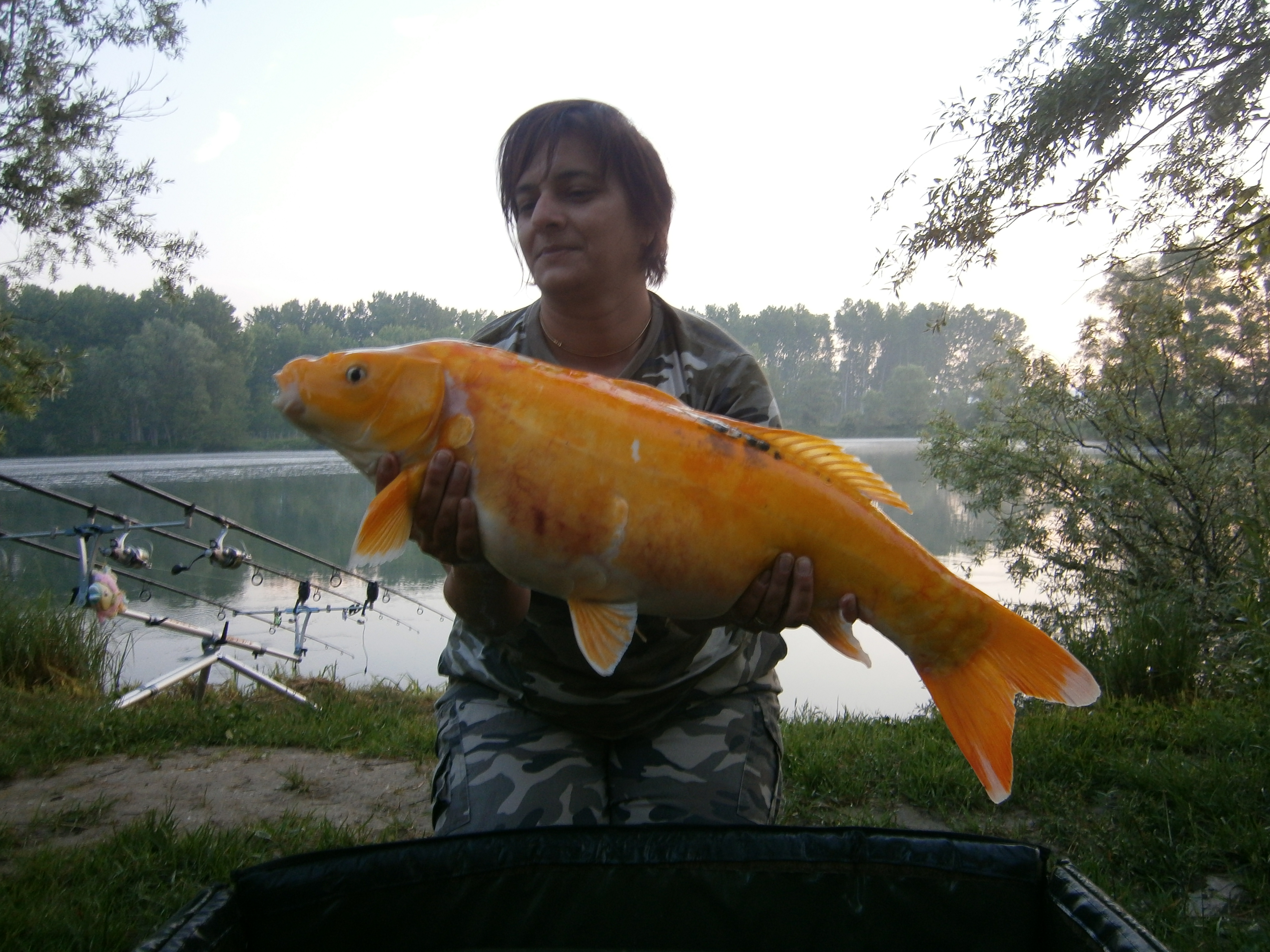 un ringraziamento speciale a Costanza che ci ha dato la possibilità di rivedere una delle splendide Koi presenti nel lago! Speriamo che le piccole Koi che stiamo allevando crescano in fretta non vedo l'ora di liberarle. Naturalmente grazie a tutti voi che siete venuti a trovarci mi fa piacere che vi siate divertiti nonostante il tempo non ci abbia aiutato molto ultimamente, d'altronde il carpfishing non è fatto di sole e prato inglese, anche il fango e la pioggia danno belle soddisfazioni. Domenica sono arrivati due ragazzi alla 3 pescando con pioggia e vento e hanno visto ben 10 partenze in circa 10 ore.