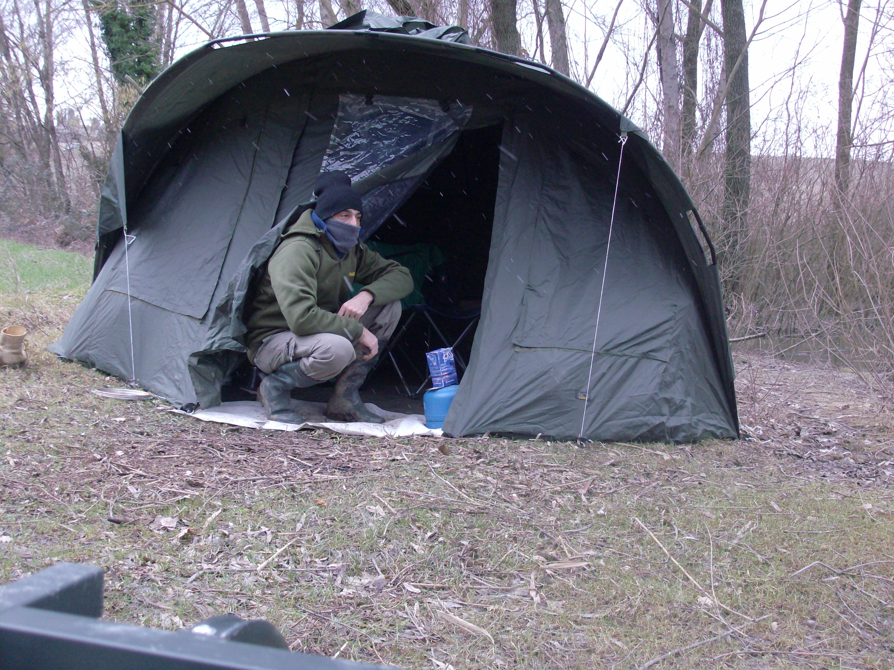 Torno verso la posta il buio è ormai arrivato sono le 19:00 ed ormai è tardi per rilanciare,anzi credo non l'avrei fatto comunque,dò una rinfrescatina agli spot con un pò di cobra e tiger nel sotto riva.M'infilo in tenda perchè il vento è veramente forte,il termometro all'albero segna -8 gradi e quello nell'acqua non sto nemmeno a guardarlo.Ora mangerò qualcosa,dopo un bel caffe caldo e lettura di dylan dog ad oltranza,finchè morfeo non mi fischierà...o magari un "delkim"....penso che se fossi una carpa non ci penserei minimamente a muovermi. :22: :22:
