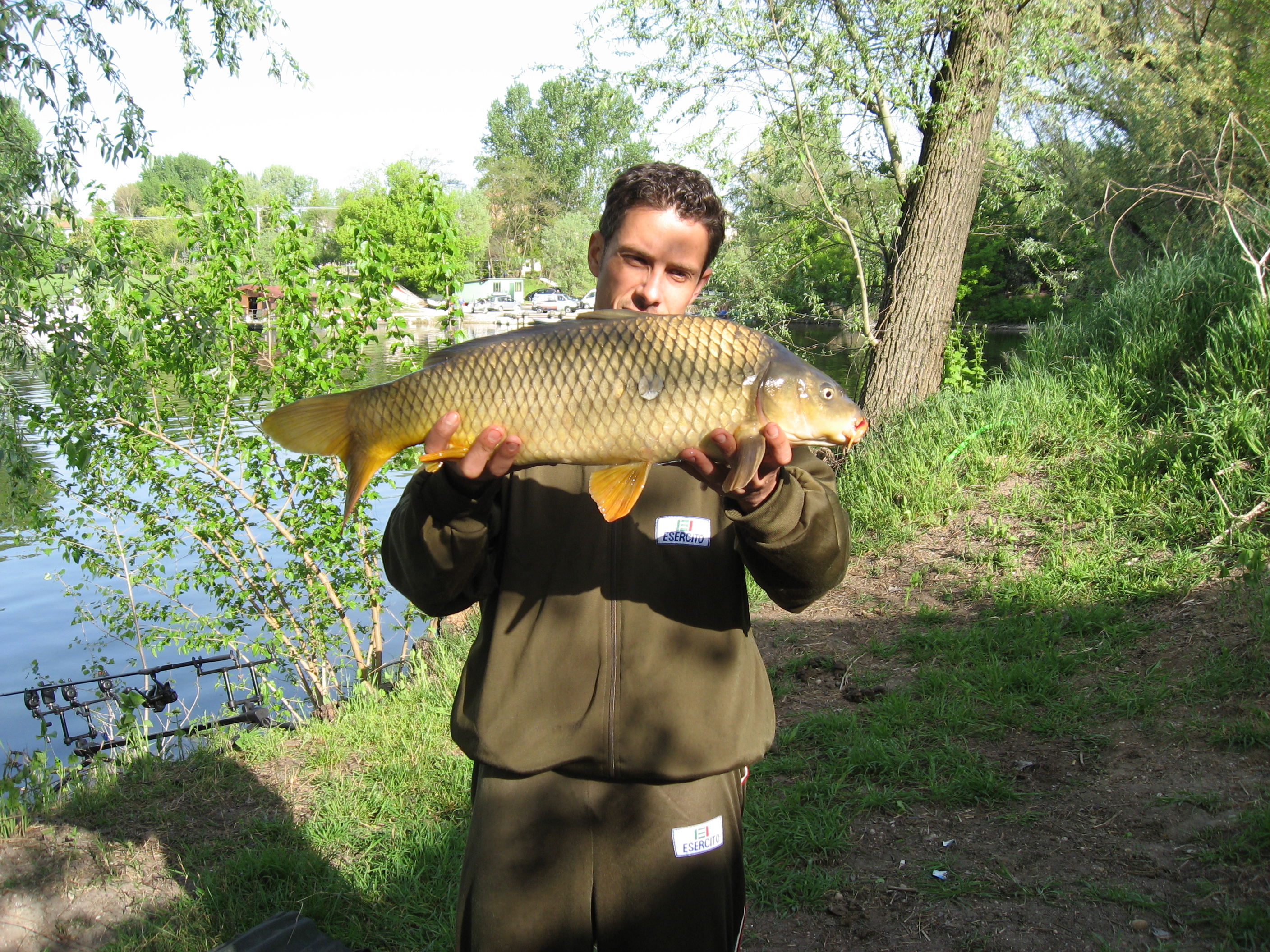 Tutto è iniziato con la mia prima uscita lunedi 11-04;mi metto d'accordo col robi che mi propone alle 23 di domenica di fare la notte in camping da lui;ok ci sto! Il telefono inizia a suonare alle 2.30, "oh,io ho già le canne in acqua,arrivi?" ma la risposposta è stata tipo "sadfasdasdgfgdf arrivo"... Sbaglio io,aperitivo troppo pesante,così tra un rinvio della sveglia e l'altro alle 5.30 riesco a tirarmi su dal letto (con a fianco la morosa che dice "ma dove ca--o vai a quest'ora?"... "tranquil,dori dormi dormi,ci sentiamo dopo") scendo le scale,apro il garage e suona il cell... "oh vecchio è arrivata la prima del 2011!!",ma che ca--o,sono proprio un ubriacone,muoviti e vai al camping! penso tra me e me... ok arrivo monto tutto e alle 6.30 sono in pesca... morale della prima uscita il robi mi prende in faccia 4 carpe sui 6-7 kg io becco 3 carassi... ed invece verso le 5 del pomeriggio eccola! la mia prima carpa!! 6kg,buon inizio.