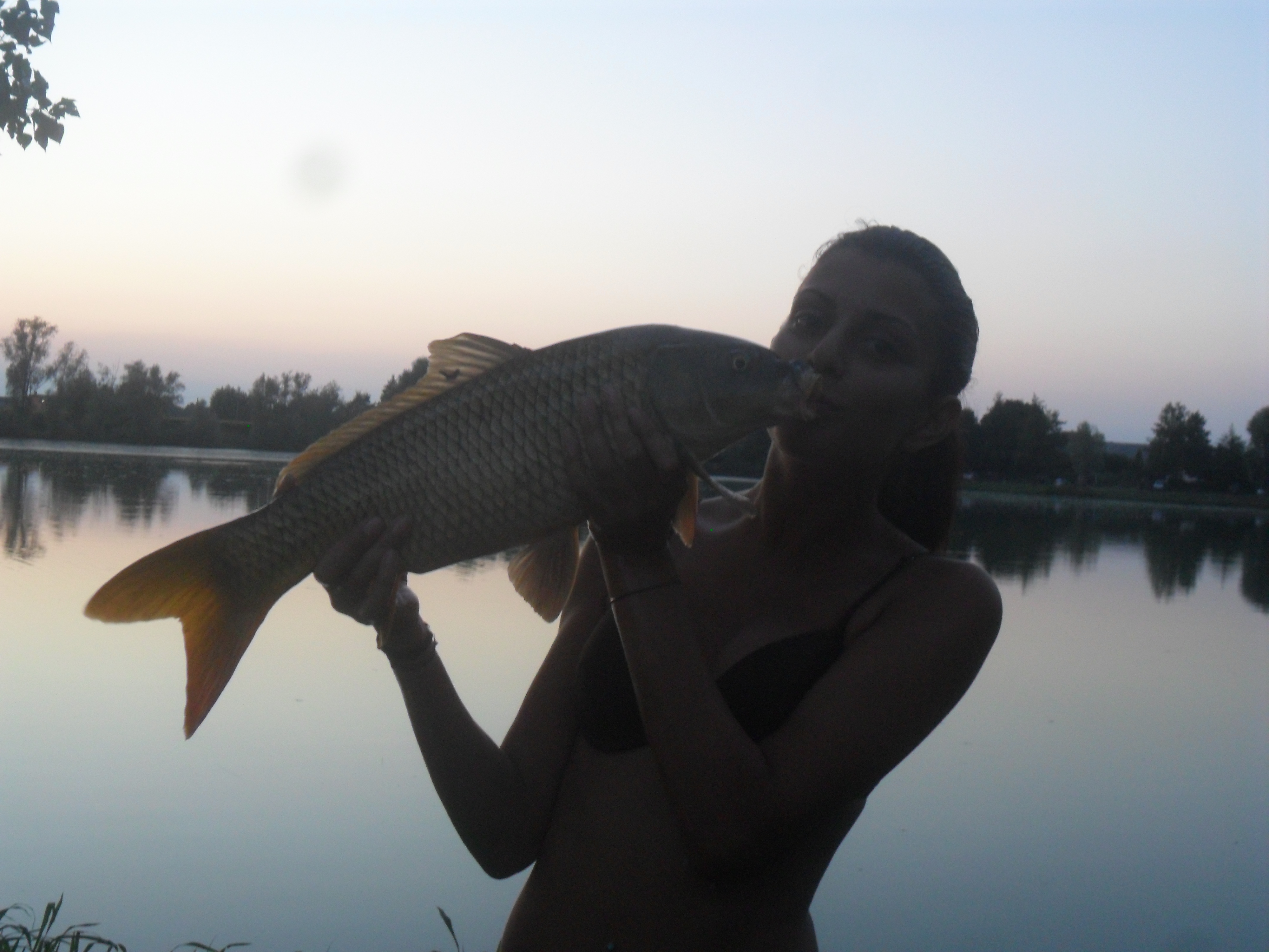 nei giorni seguenti le partenze sono state tante le carpe pure ma le slamate hanno continuato a darmi noia..va bè fanno parte della pesca!!alla fine il totale delle catture è di 16(circa :lol: ) 5 delle quali tirate su dalla mia ragazza :) al terzo giorno per non farla annoiare dato che guadinava soltanto e faceva foto gli ho detto "scegliti una canna"..lei ha scelto quella con l'avvisatore blu e con la boiles alla fragola..3 partenze di fila sullla fragola :lol: :lol: :lol: in più ogni volta che andavo a fare la doccia tornavo e lei aveva la canna in mano!!alla fine quasi pescava più di me..ha cominciato ad innescarmi le boiles e ha fatto il suo primo hair-rig..mi sa che al prossimo compleanno devo fargli un pod :lol: :lol: