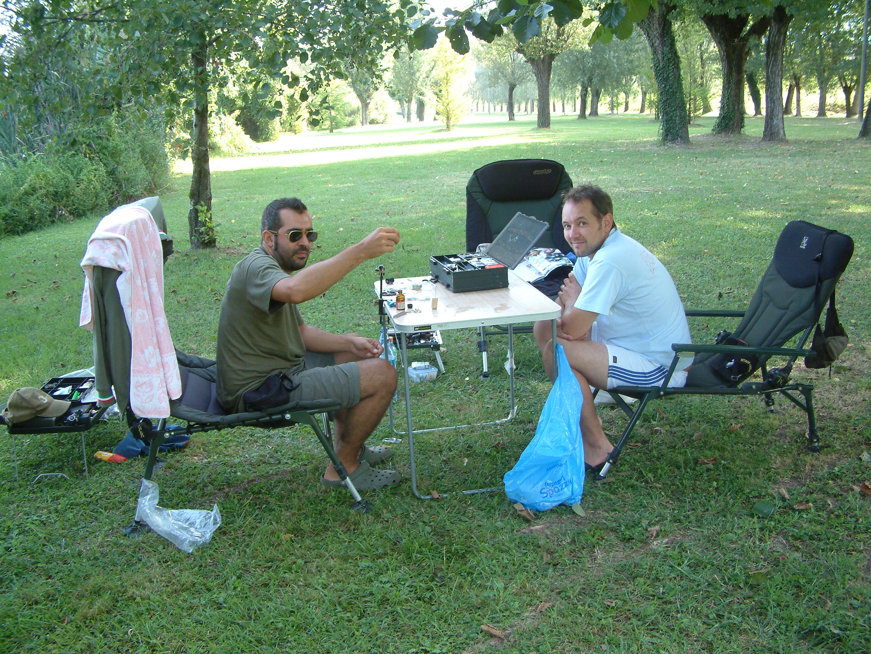 Giunti sul posto abbiamo dato il via ad una faticaccia tremenda, sudato come dei matti ma dopo 45 minuti era già tutto risolto, eravamo finalmente giunti alla posta con l'attrezzatura all'ombra di un salice piangente che avrebbe fatto da casa nei prossimi giorni ...