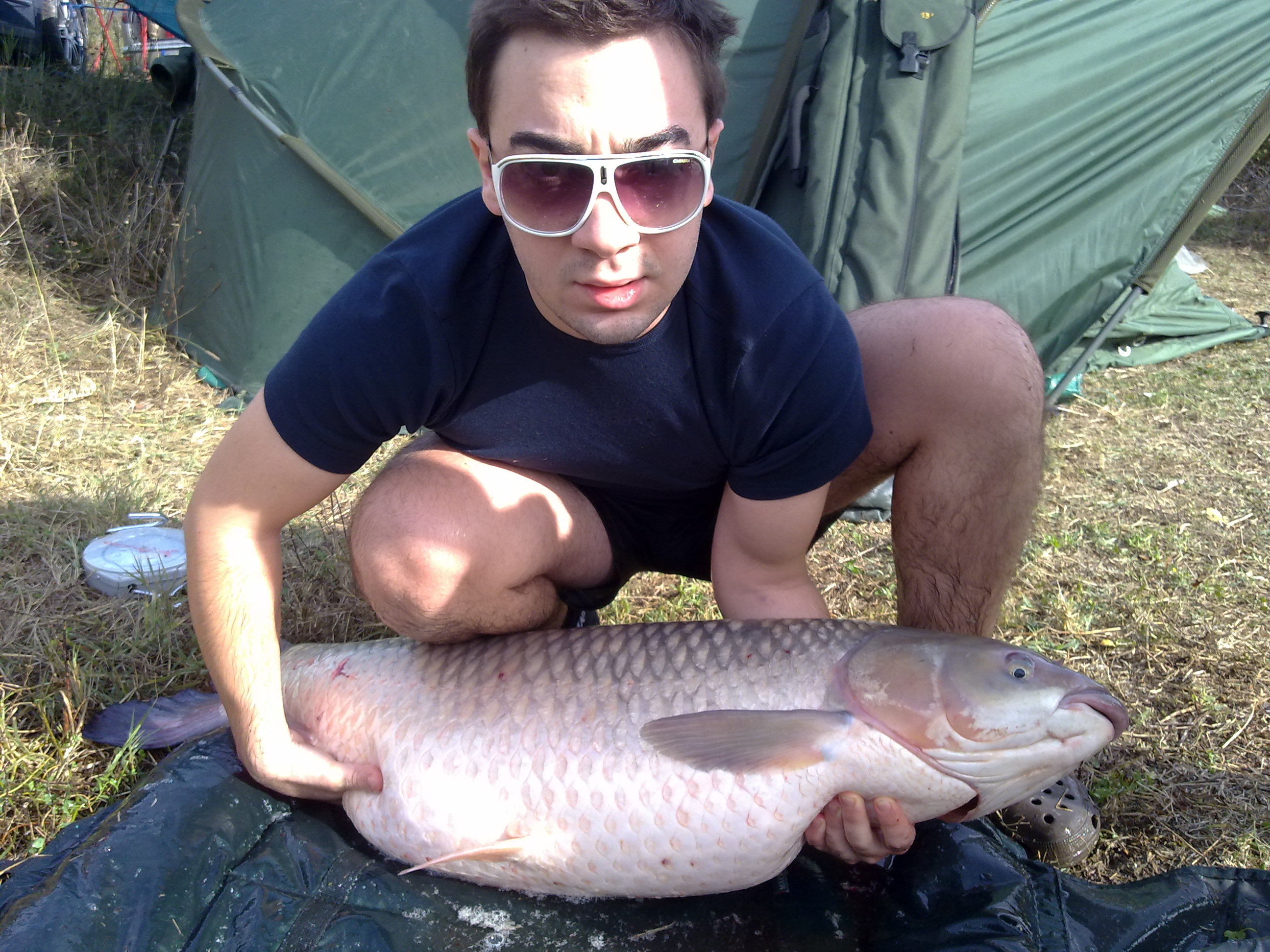 ciao a tutti,nel weekend appena trascorso finalmente per la prima volta sono riuscito ad andare ad ostellato...parte tutto da venerdi notte quando appena finita la cena aziendale porto a casa la ragazza e di fretta e furia vado a casa a caricare la macchina...verso le 3 di notte parto da casa mia alla volta di ostellato insieme a 2 mie amici e soci di pesca e 1 amico che viene la così solo per accompagnarci. una volta arrivati sul posto dopo un piccolo sopraluogo iniziamo a montare tende e attrezzatura, aspettando però le prime luci dell'alba per lanciare...peschiamo praticamente da sabato mattina alle 8e30 a domenica alle 11e30 con 9 canne in totale e per quanto riguarda le esche con boiles del 20,tiger e mais....io personalmente decido a differenza dei mie soci di pescare con 2 canne a ridosso dei canneti nella sponda opposta(penso la distanza fosse sui 100 metri scarsi)e con l'altra a 10 metri da me...alla fine della sessione i mie amici pultroppo non riusciranno a prendere nulla(sfiga)...io invece apparte 2 breme e 1 carpetta da mezzo kilo ho avuto la fortuna di portare sopra la riva un bellissimo amur che in pesa con materassino segnava 22 kili poi pesando a parte il materassino il reale peso era di 18.5/19 kili...e stata anche se breve una bellissima sessione di pesca e qui di seguito allego la foto dell'amur e della postazione per farvi un'idea....ciao a tutti