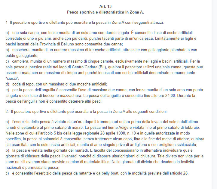 è zona A si pesca con una canna dall'alba al tramonto solo nel periodo di chiusura caccia