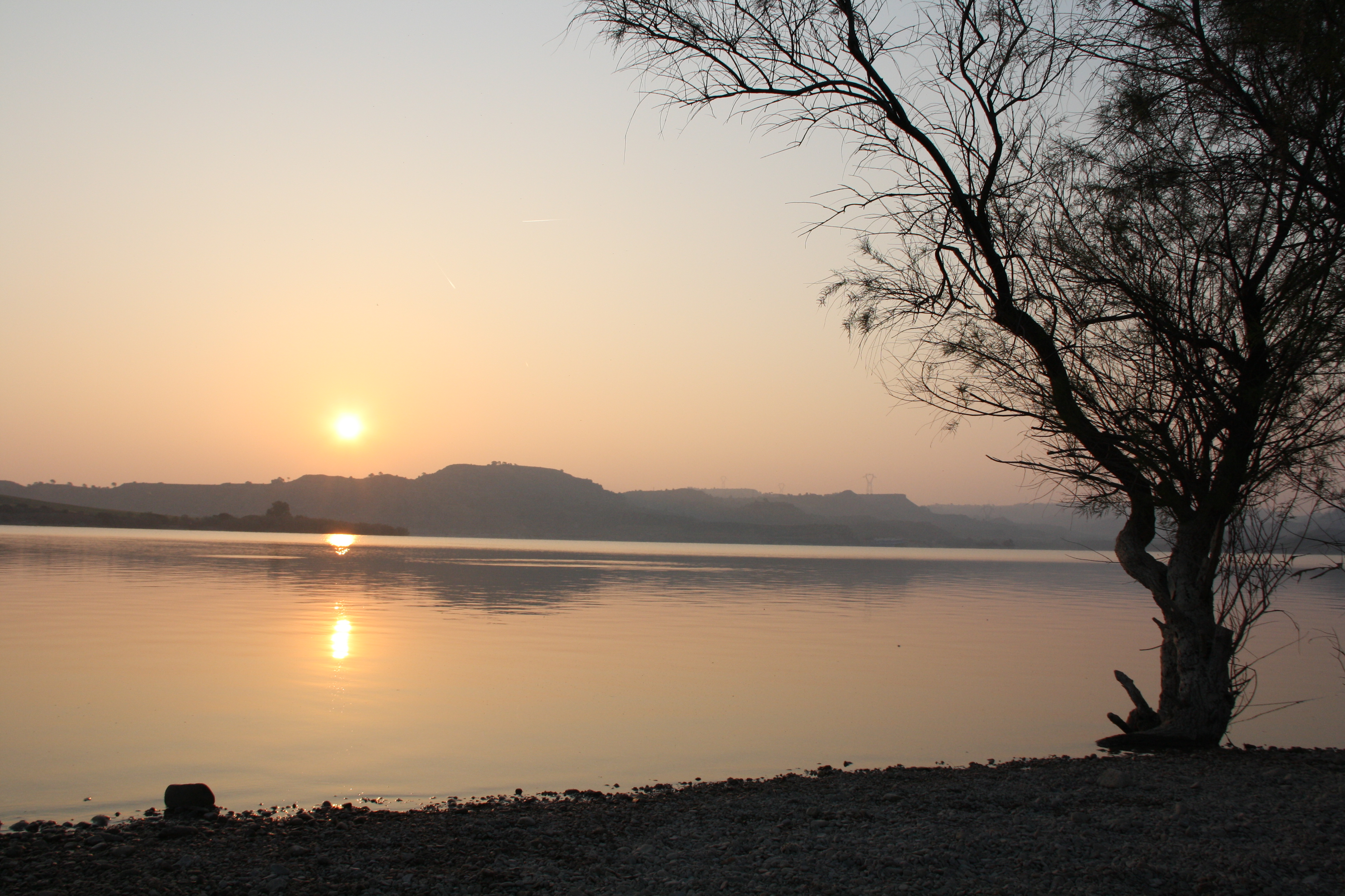 Andando verso Caspe vedi la diga di Menquinenza e poi,tra coline ,riesci intravedere dall alto piccole framenti di lago che non sono accessibili, avendo le rive molto,molto ripide .
