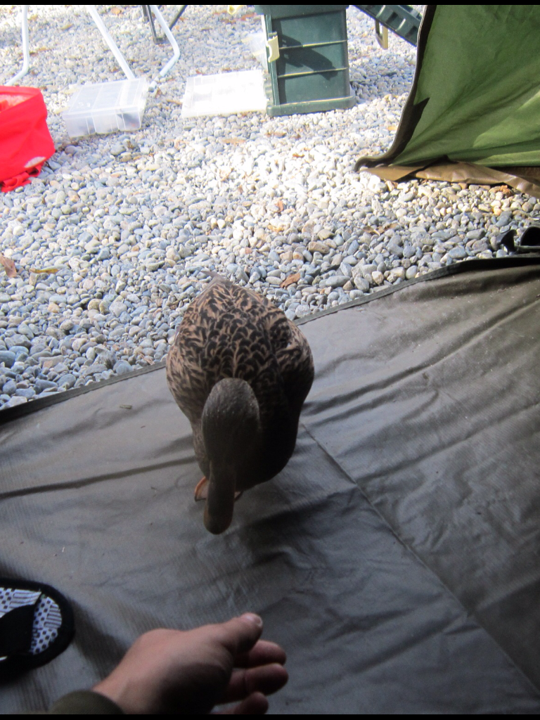 La papera si è mangiucchiata la pizza incustodita in tenda mentre calavamo