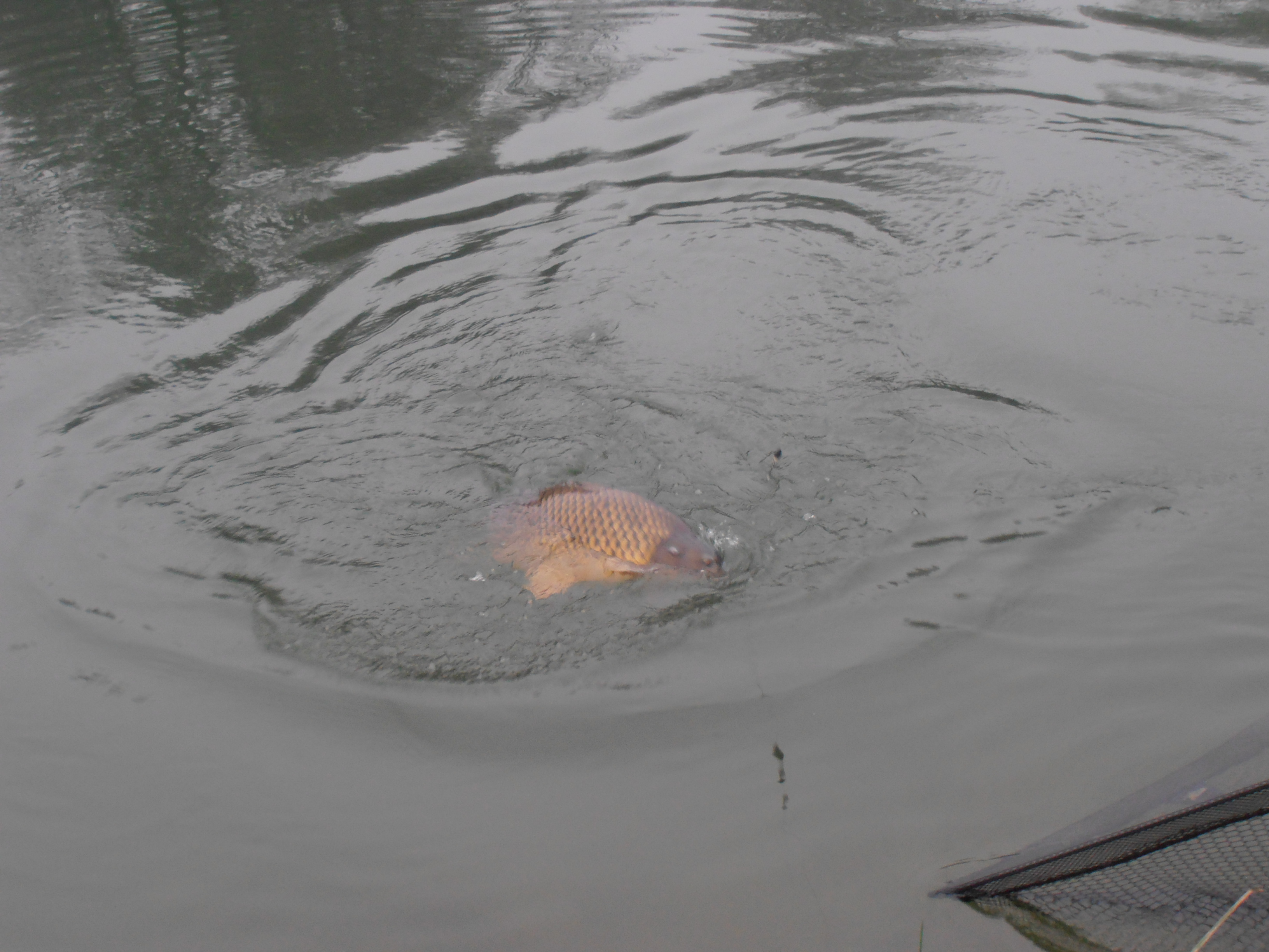 dopo ore di niente totale una bella ed inaspettata sorpresa.. stavo recuperando per controllare la mia esca quando mi accorgo che attaccato c'è un pesce... e che pesce!!! una bella carpa regina di 8 chili e mezzo pesati:).. la cosa anomala è che non abbiamo avvertinto alcun segnale nessuna partenza e nessun movimento del galleggiante..