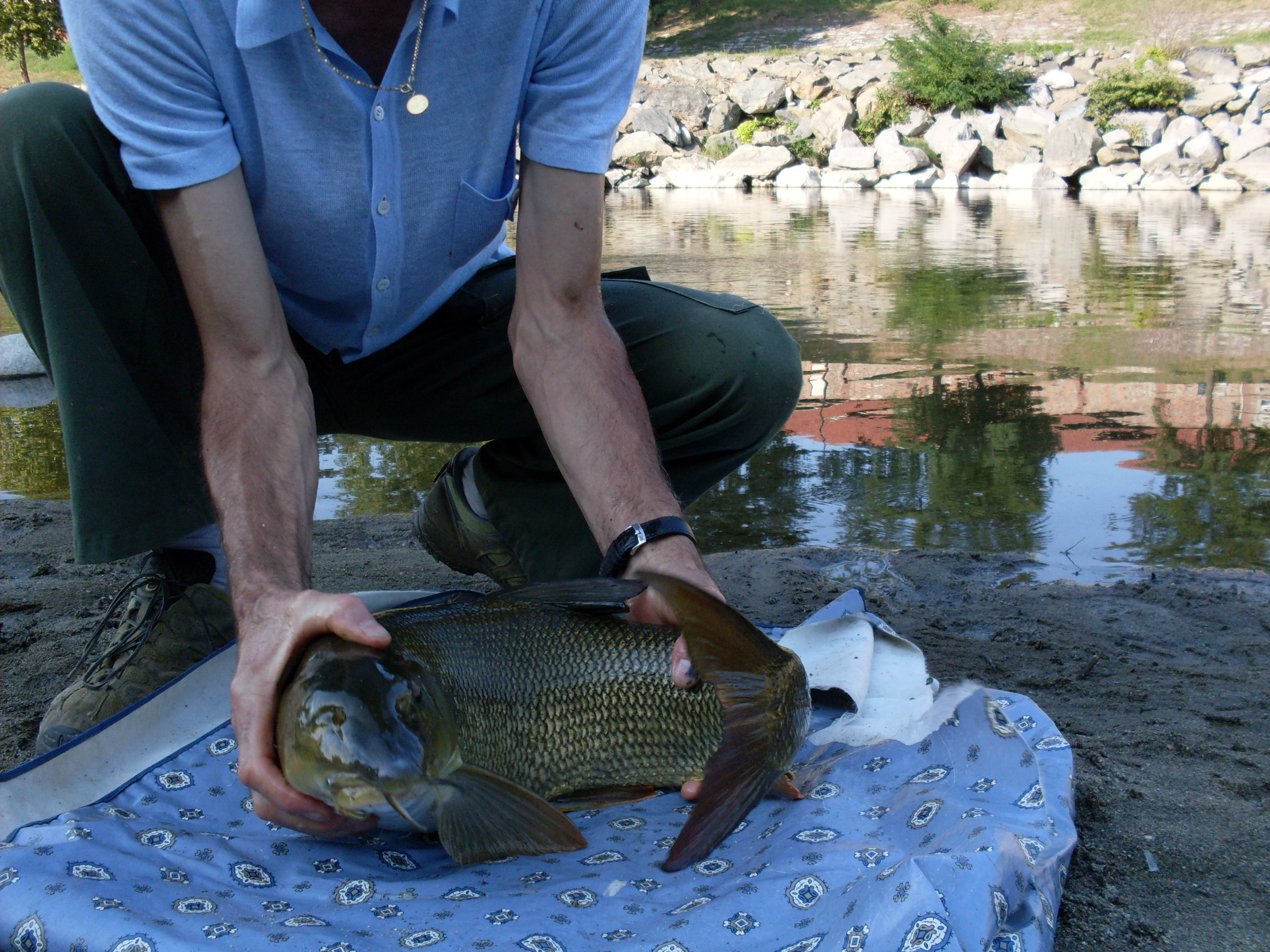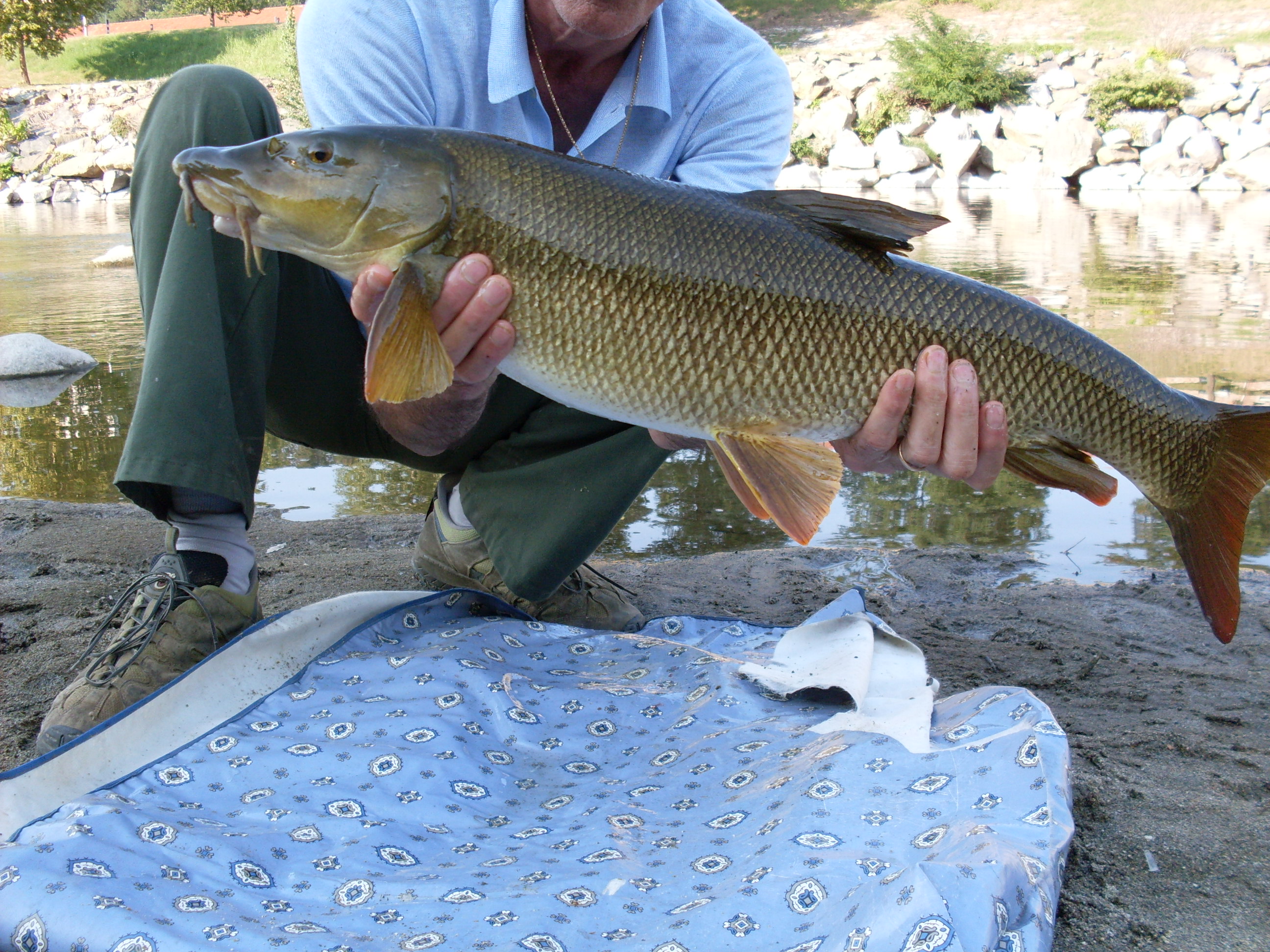 oggi 4 ore in fiume dalle 14,30 alle 18,30solito posto solita esca tutto 8uguale,(per mè è una questione di principio, una sfida don il fiume,quest'anno molto avaro di catture in fatto di carpe)lancio la prima canna tendo il filo aggancio lo swingeraccendo l'avvisatore,tutto a posto, monto la seconda canna, faccio per innescarla e.... biiiip mollo tuttu nferro c'è, sembra un treno, non devo lasciarlo andare dentro la prismata, tiro, si gira , ormai viene, lo vedo è un barbo bellissimo,lo tengo in acqua bassa mentre cerco di aprire il materassino, apro la custodia