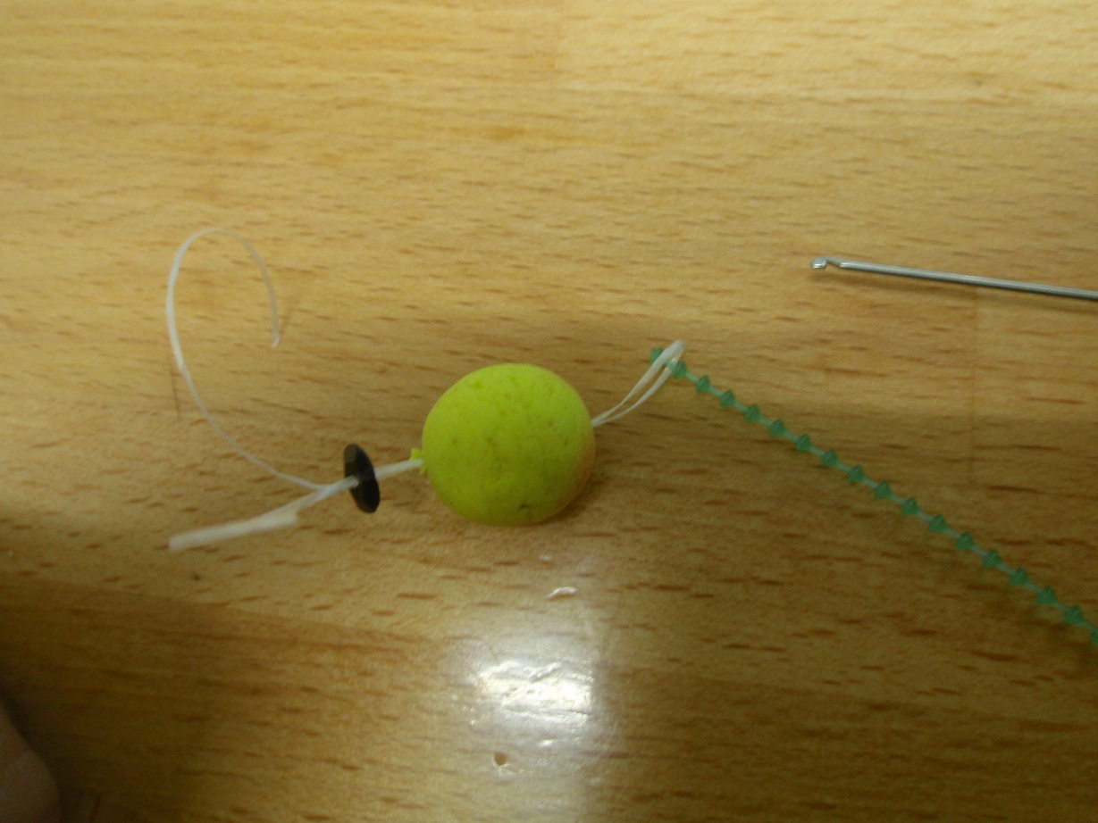 nella foto mancano lo stoppaboilies e il filo (io uso un veccio rocchetto di interdentale), quindi: trapanino, ago da innesco, ago da maglieria, elastichino tondo misura media (quelli gialli della technipeche vanno meglio di quello in foto), paillette, amo e la nostra fichissima boilie popup MODO 1, Legatura.