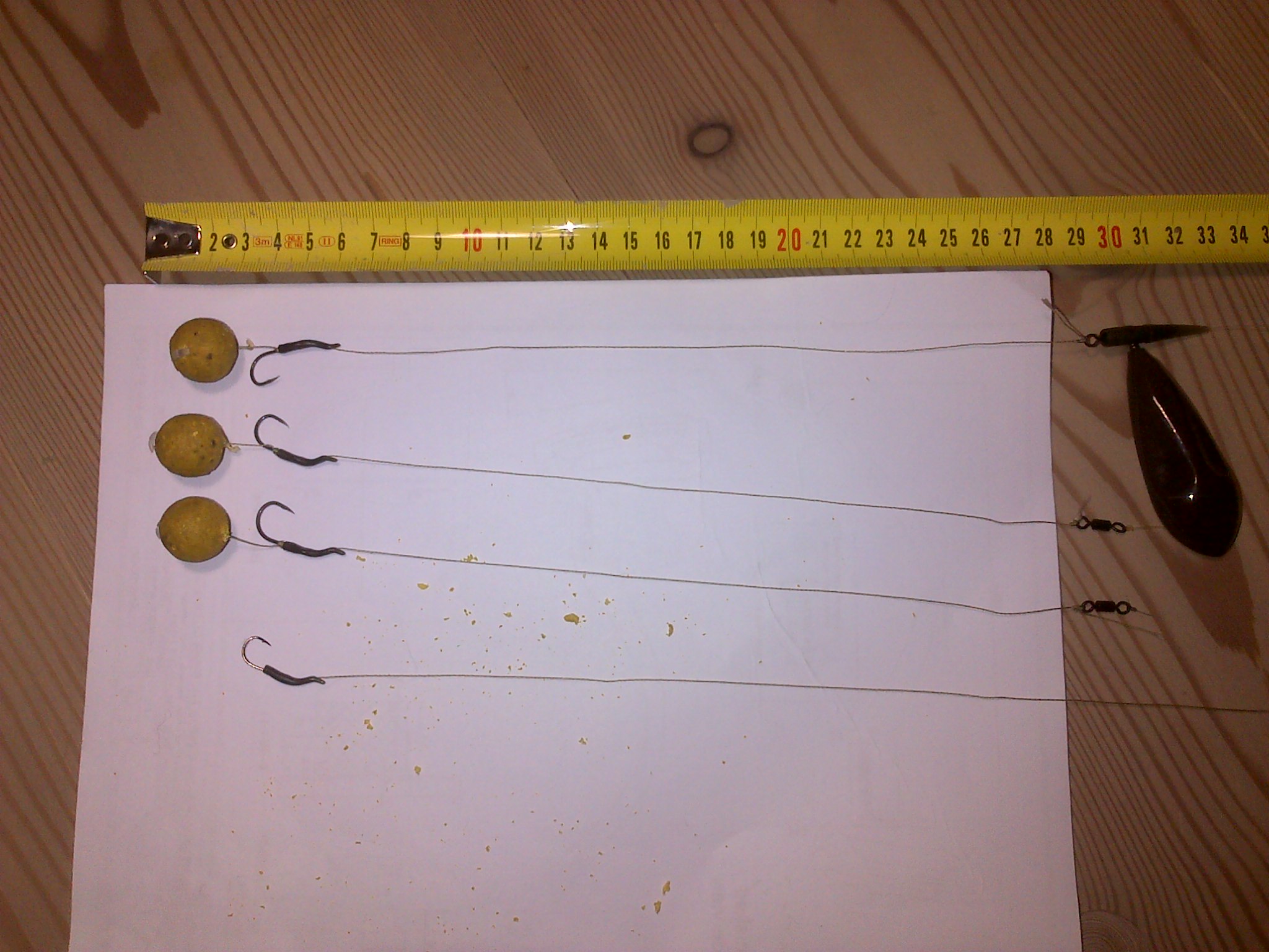 1) La costruzione dei miei terminali safety rig, composti nello specifico con piombo da 75gr, treccia 35lb, ami continental boilie kkarp del 2 e del 4, tubicino line aligner sagomato e boiles da 20mm al mais