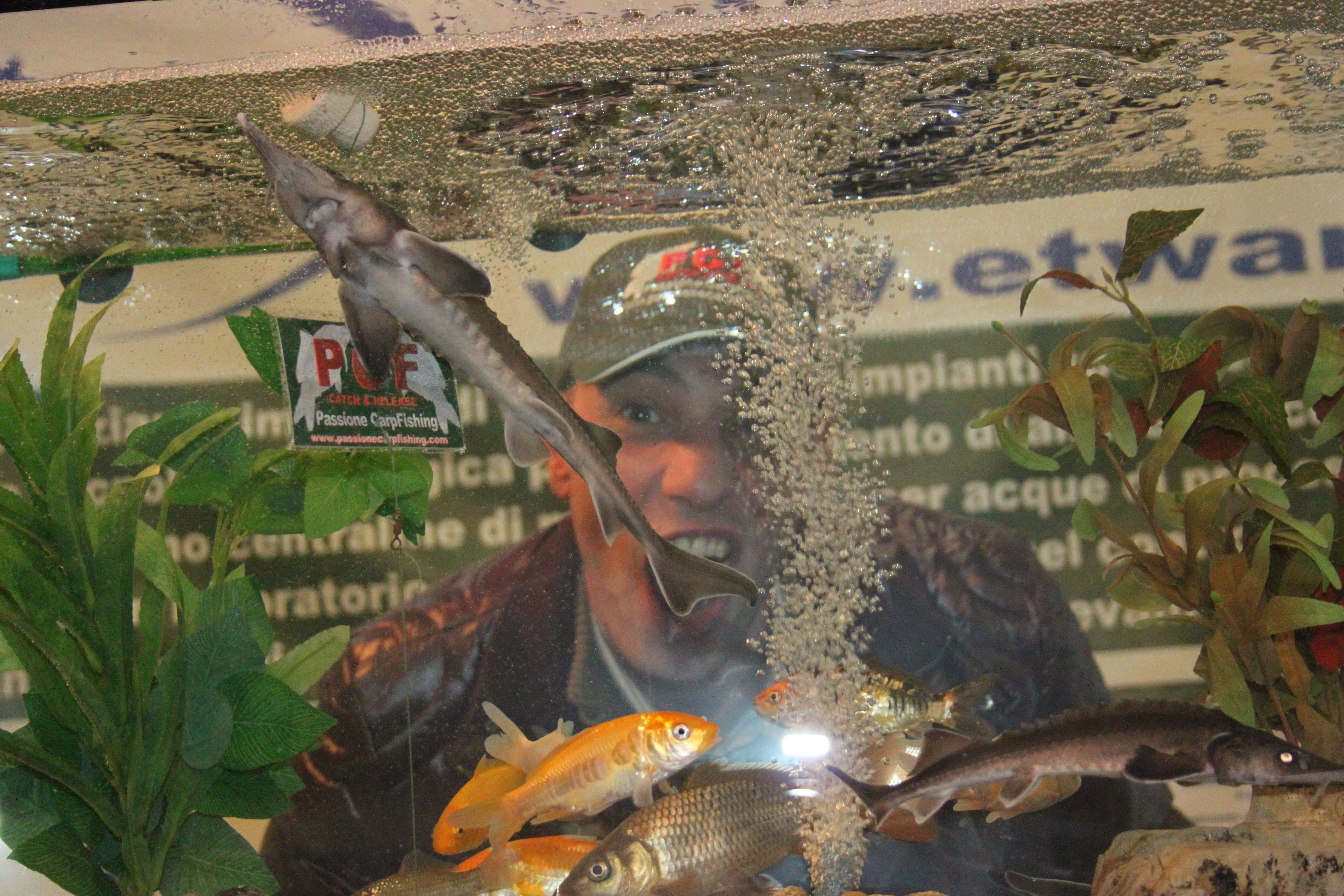 Ecco alcuni momenti della prima giornata di fiera.Notare che spettacolo il nostro acquario con storioni e carpe koy