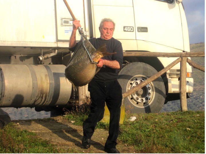 La prassi sarebbe quella di prelevare il pesce dalle vasche con dei guadini, 1 o 2 pz alla volta, per poi immettterli nel camion tramite le apposite aperture poste sul ''tetto'' ,ovviamente la vasca è costantemente ossigenata.