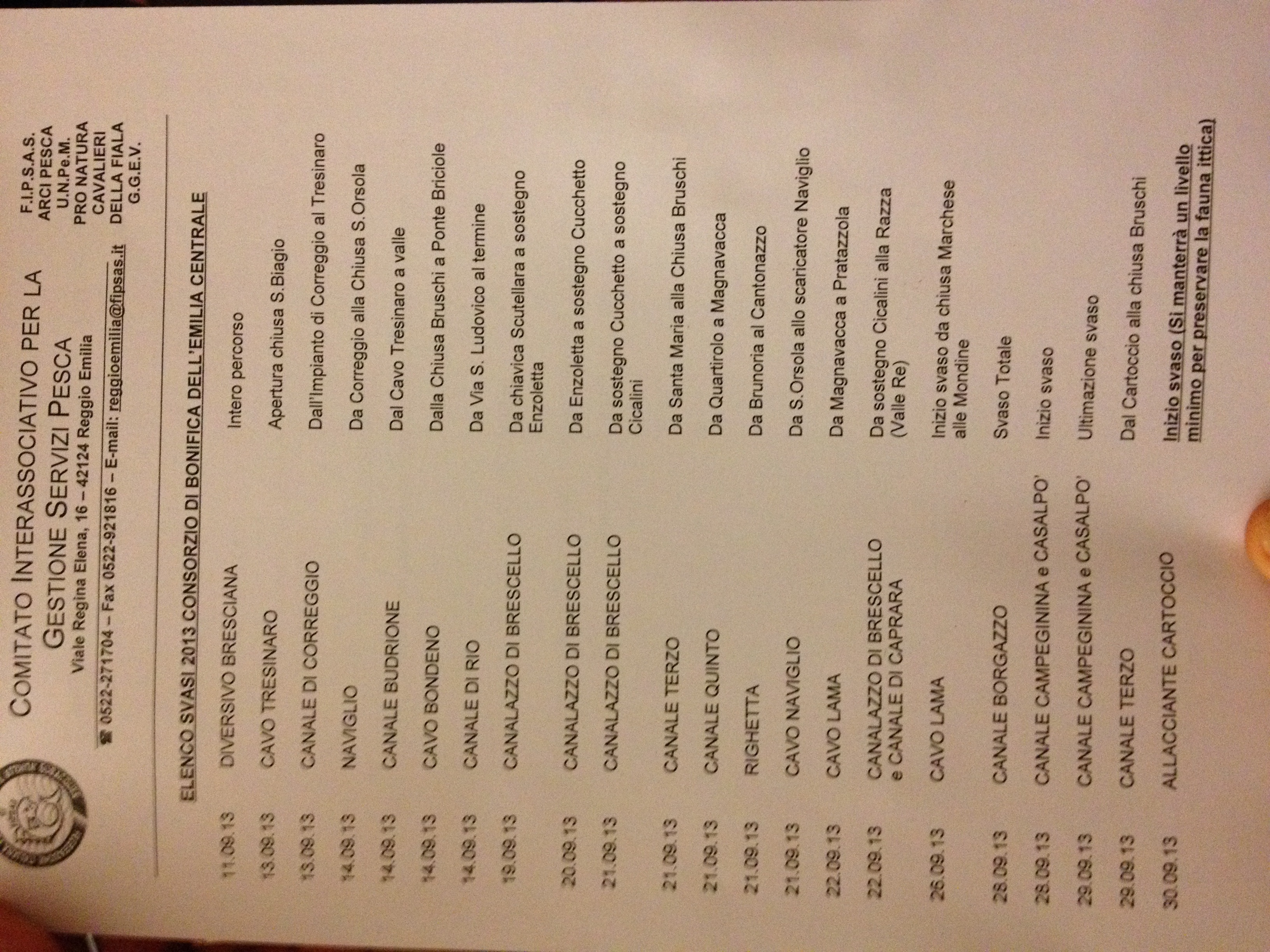 Con grande rammarico, mi voglio postare il programma degli svasi dei canali della nostra, provincia.
