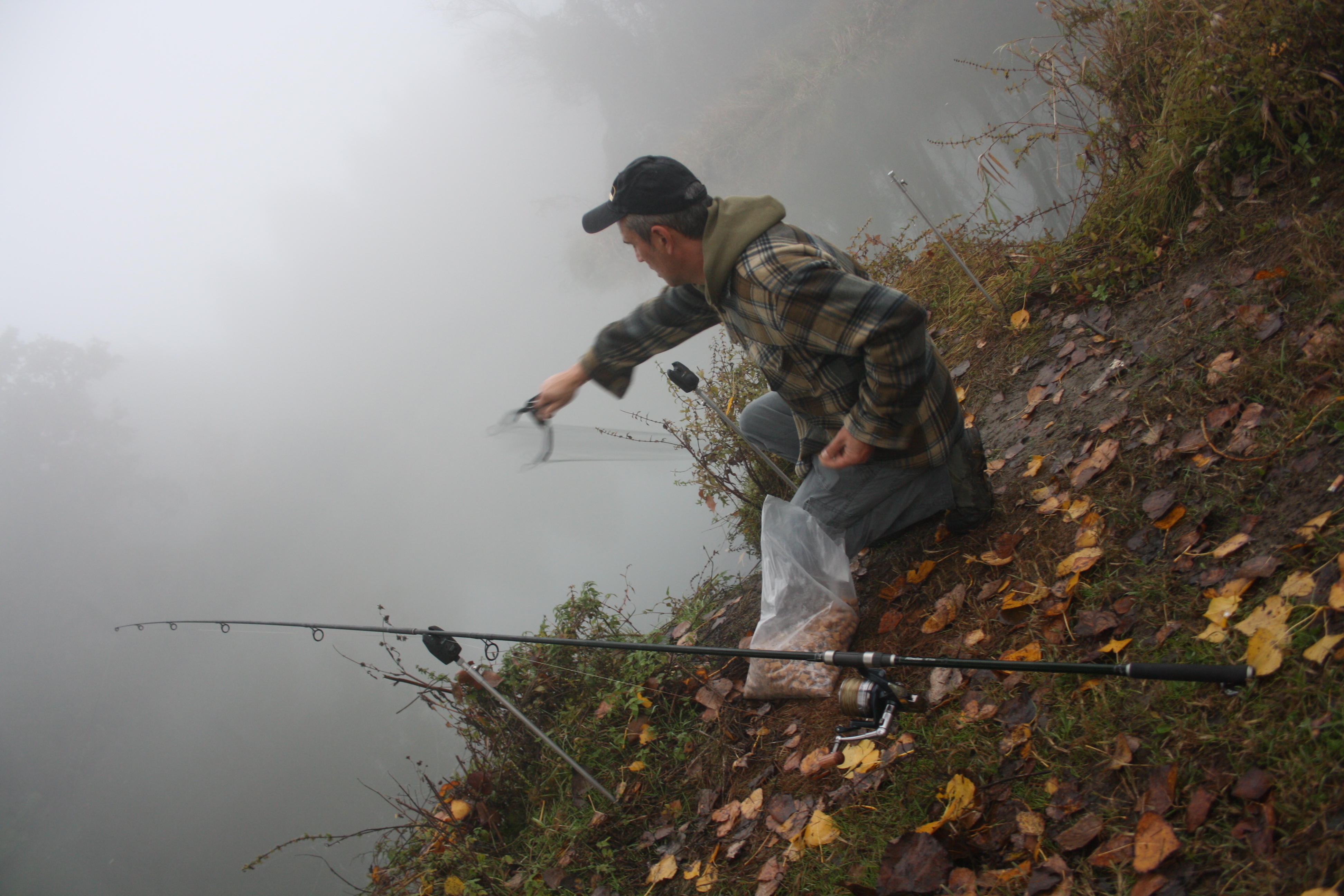 Nel frattempo la nebbia inizia a dissolversi cosi zambo e gian decido di lanciare le ultime due canne... Gian lancia e dopo 3 secondo partenza a razzo e porta una guadino un'altra bella carpa.