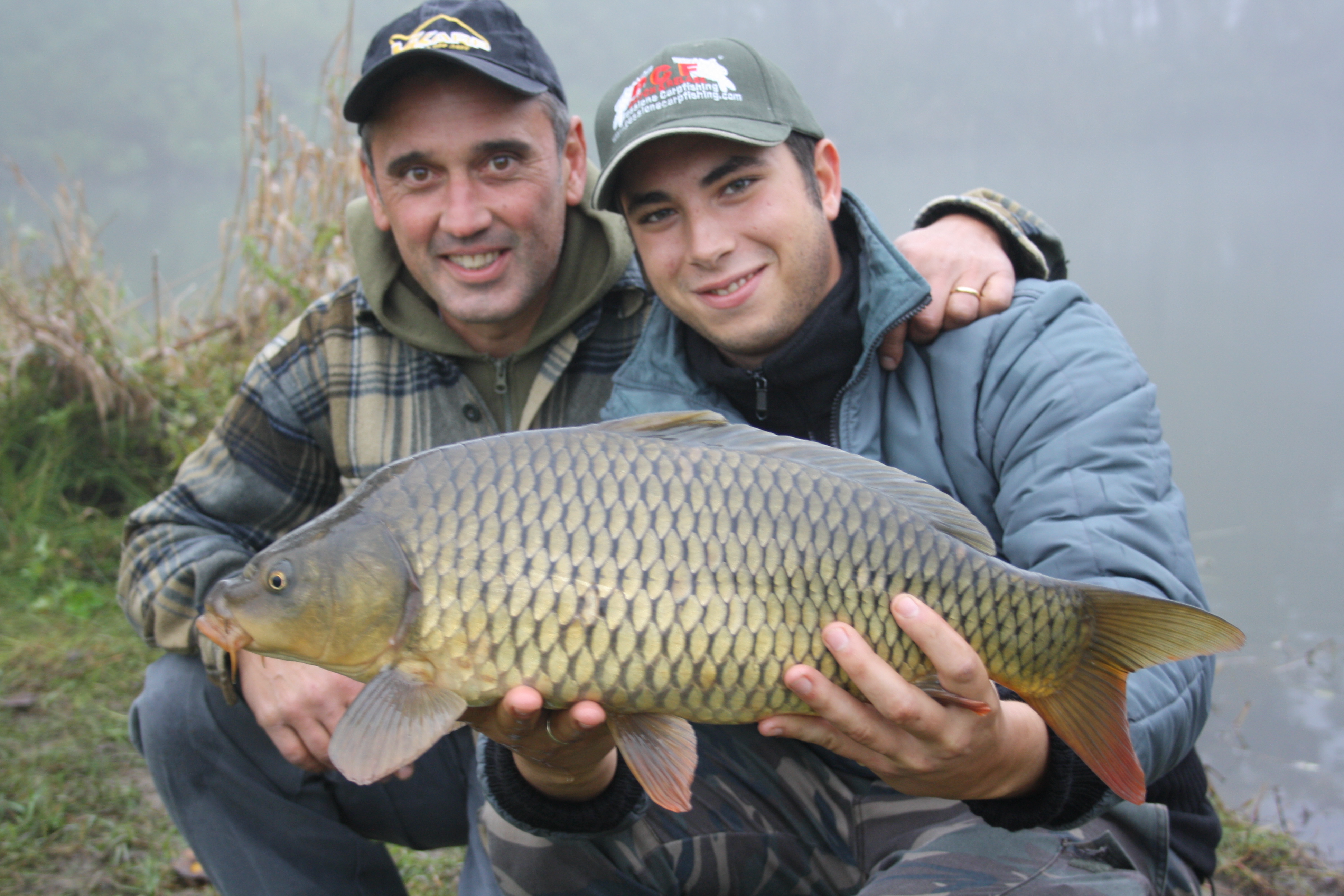 Nel frattempo la nebbia inizia a dissolversi cosi zambo e gian decido di lanciare le ultime due canne... Gian lancia e dopo 3 secondo partenza a razzo e porta una guadino un'altra bella carpa.