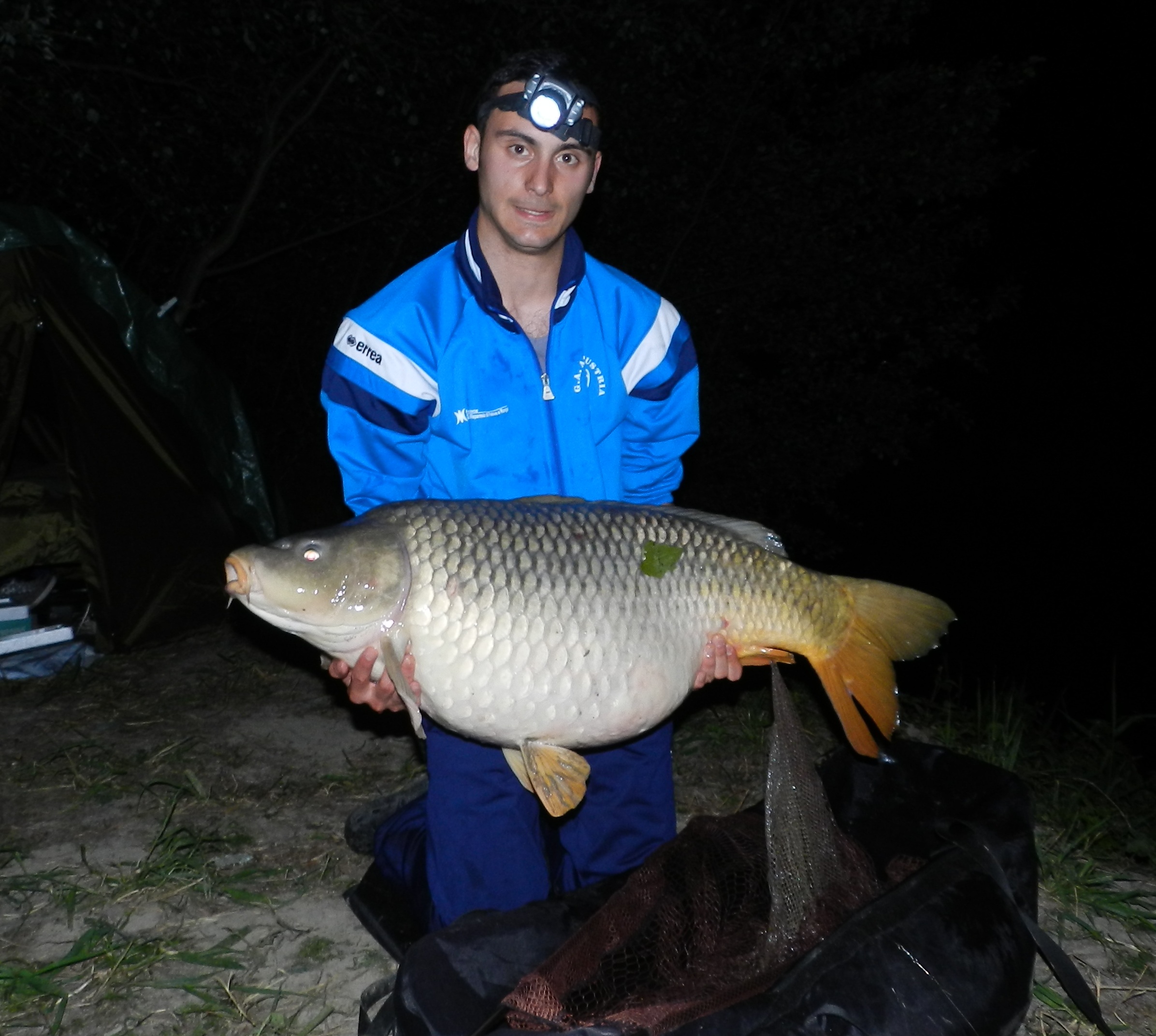 dopo mezzora prima partenza e porto a guadino questa bella carpa da circa 9 kg ricalo e aspetto. Le ore passano senza nessun bip e alle 11 decido di far il test al sacco a pelo