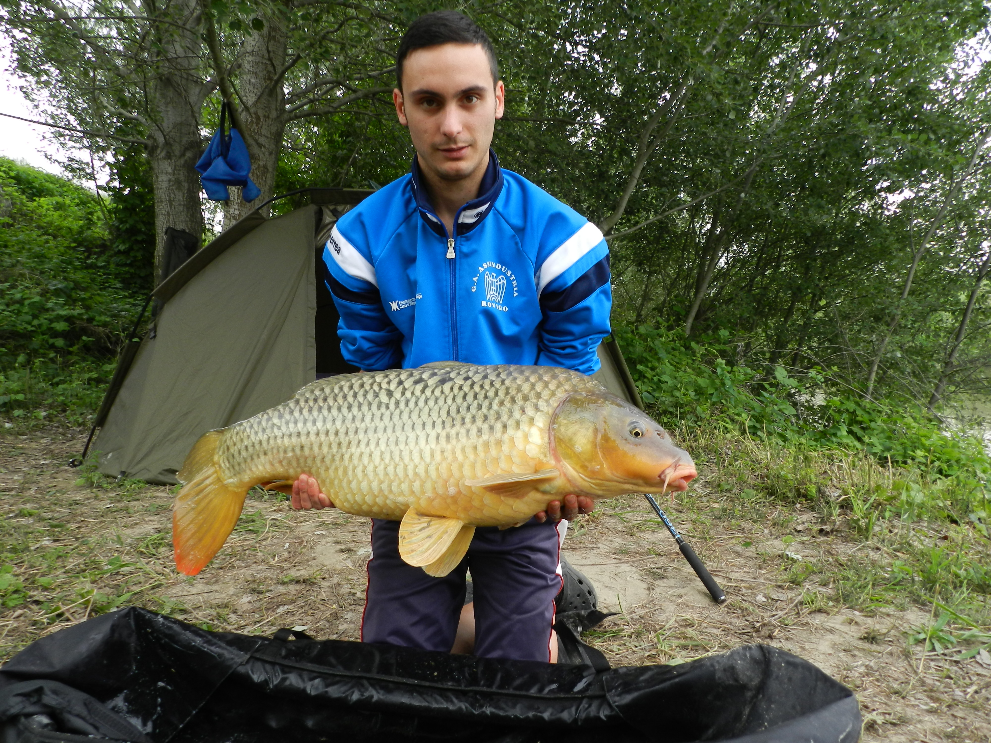 Sveglia ore 7 la mattina aggiusto la canna e ricalo, ore undici una bella carpozza da 13 chiletti viene a farmi visitina Pranzo
