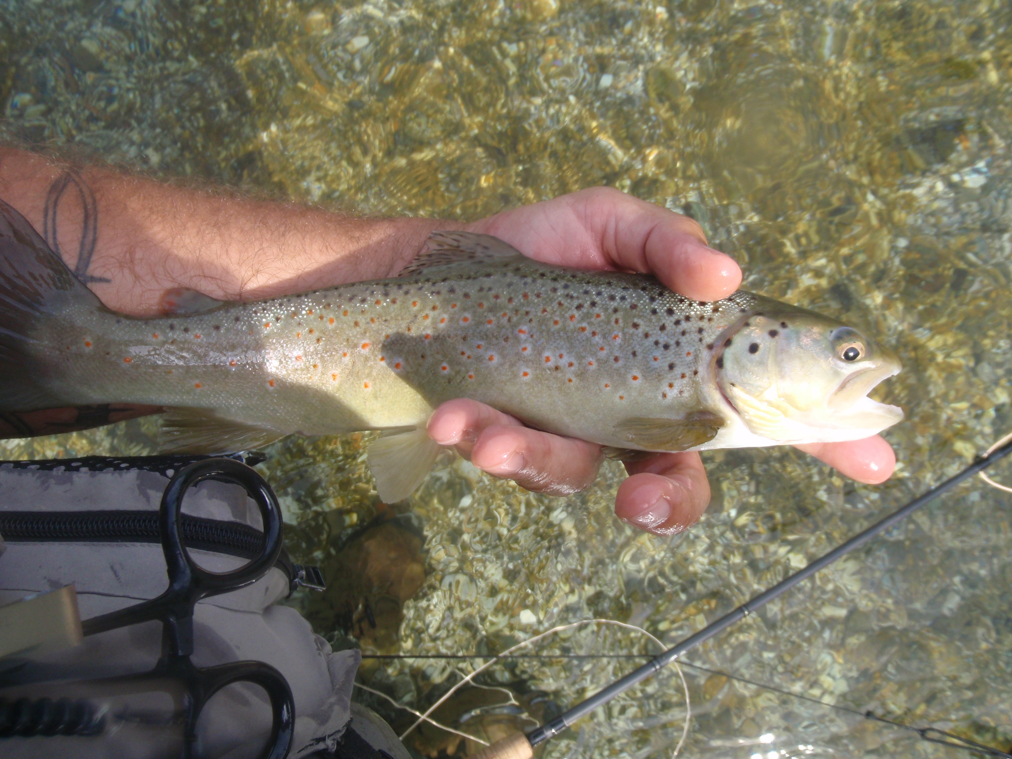 spesso con la moscona da caccia ho pescato a scendere lanciando in tutte le correnti e buchi d'acqua trattenendo il lancio per fare ragguppare il finale in modo da evitare i dragaggi. Pure essendo mosche enormi le trote fario ed iridee presenti non sono state assolutamente schizzinose accettando di buon grado l'esca proposta, anche in piane con acqua limpida e liscia come l'olio (dove i più fighetti pescherebbero con ami del 18 e filo del 0.10 massimo...).