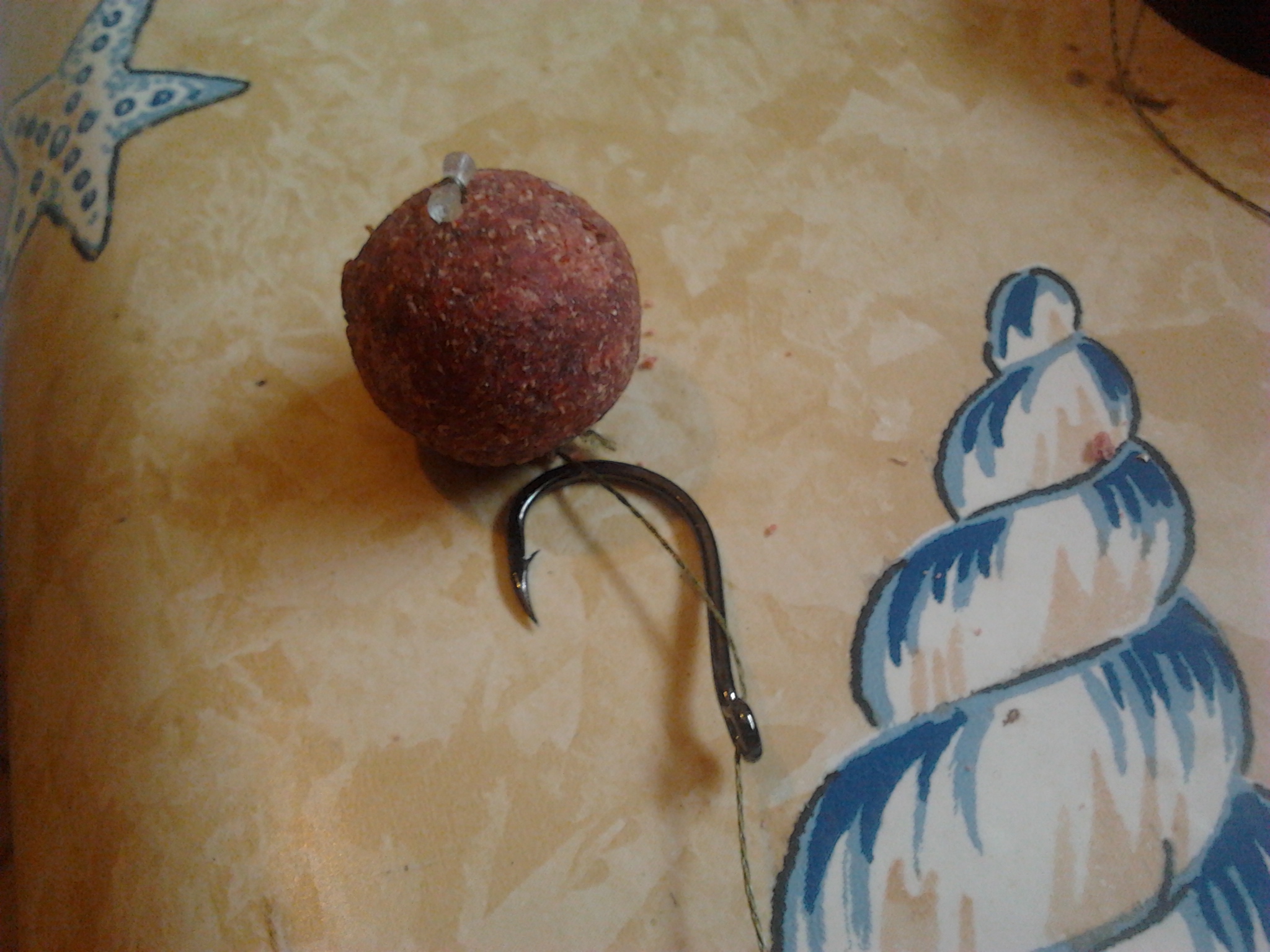 quello che ci serve è un trecciato più sottile ,per costruire il capello: a questo punto vedremo il diametro della nostra boilie che non dovrà superare la curvatura del nostro amo: iniziamo ad annodare normalmente in nostro trecciato sottile con il nodo senza nodo e tagliamo l'eccedenza: ora prendiamo un trecciato più spesso per cortuire il "corpo" del terminale annodandolo sul trecciato più sottile: il terminale è completo....in questo modo la boilie sarà molto piu mobile ed allo stesso tempo anche l'amo che penetrerà con più facilità nella bocca dell'amo: spero vi sia piaciuto e spero lo utilizzerete anche voi