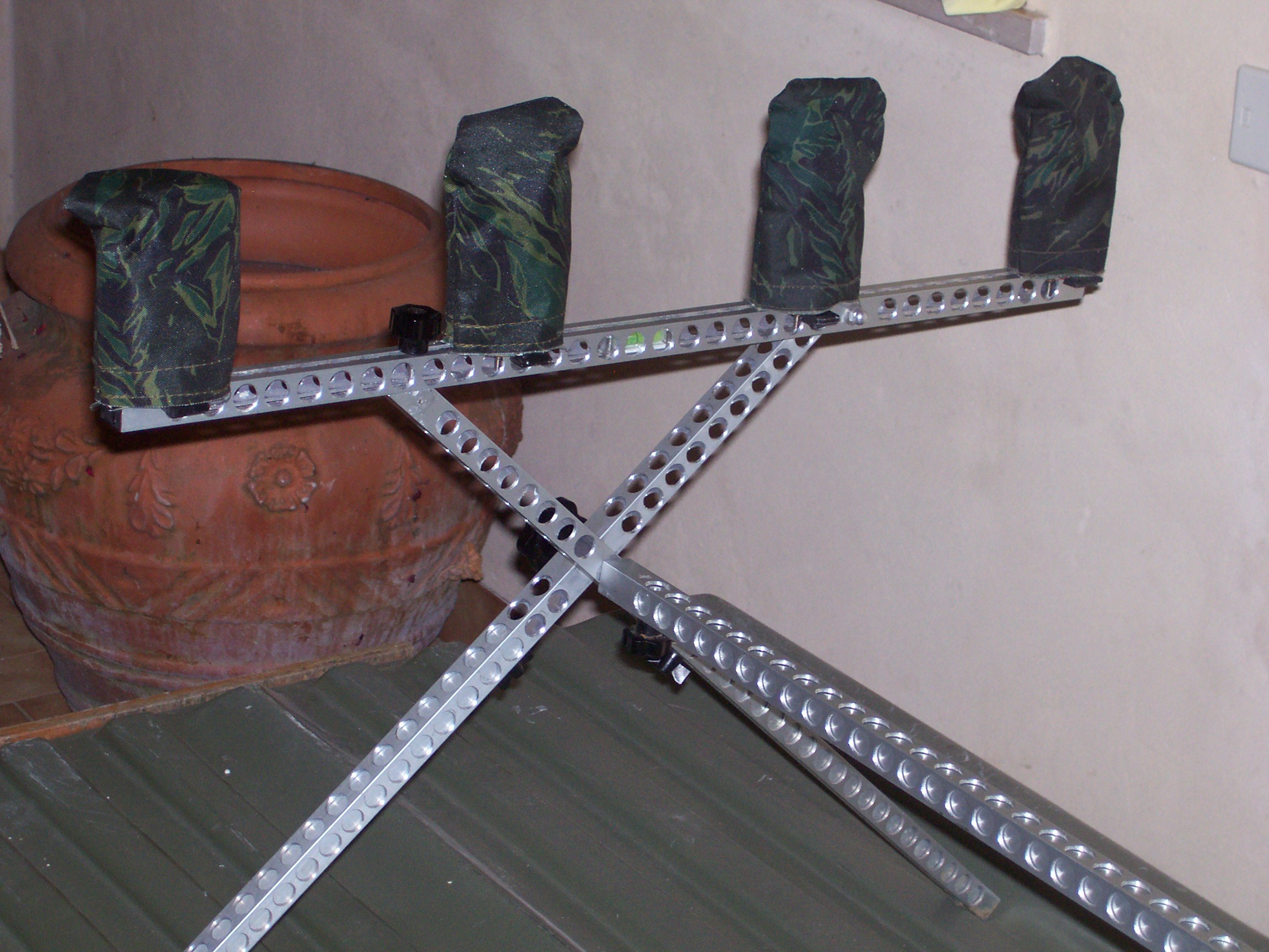 Il Rod Pod è composto da tre pezzi: la barra centrale a cui si vanno ad avvitare i 2 pezzi composti da buzz bar e gambe .Molto ingegnoso è il sistema che unisce buz bar e gambe, che permette di poter allargare o ristringe le gambe a piacimento e di poter montare il pod in pochi secondi inoltre i buz bar sono provvisti di due livelle!Il modello in foto è per 4 canne ma ne sta progettando uno da 3!