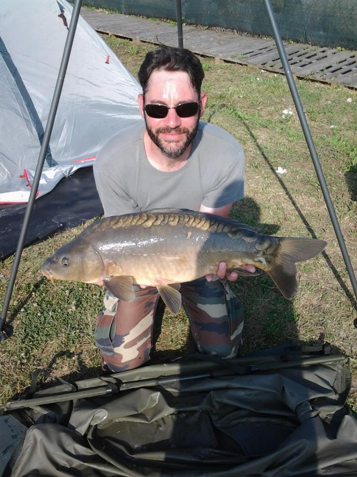 Per tutto il resto della nottata tutto tranquillo e quando arriva il mattino l'ora del risveglio è tragico dopo 5 ore di sonno... Però ero soddisfatto e quando arrivavano amici a trovarmi mostravo loro con orgoglio le foto delle catture. Durante la giornata non si sentiva volare una mosca e alle 12:00 rimango da solo che Cristian aveva un pranzo. Alle 14:00, sotto un sole cocente decido di iniziare a smontare con calma il campo, una mezzoretta per smontare qualche cosa e una mezzoretta all'ombra per riposare, quando verso le 17:00 parte una canna, sempre quella di destra, una boilies da venti al mais su un finale hair rig, semplicissimo ma risultato il piu efficace,la lenza scorre veloce e il pod si inclina rischiando di far cadere le canne, sembrava indiavolata, afferro la canna, 2 giri di manovella fanno scattare il bait runner e ferro, tenendo la canna alta cerco di capire cosa abbia allamato ma dopo 2 secondi mi piega la canna e mi tira verso la diga, abbasso la canna e non faccio in tempo ad allentare piu la frizione che parte, “tira come se avesse il diavolo alle costole”, dico io, il gestore vicino me mi dice “ forse hai preso una balena” e se la ride, comincia una lunga lotta piena di fughe da parte del pescione che ho allamato, un tira e molla durato quasi 45 minuti, una gara di resistenza fra me e il pesce, ma per fortuna ho avuto ragione io, e una volta a riva il gestore, Maurizio, mi aiuta a guadinare quel bel'esemplare di specchi da 6,5 Kg che tirava come una forsennata. Pesata fotografata e rilasciata continuo a smontare le mie cose e alle 19:00 lascio la diga soddisfatto della 2 giorni piena di catture e di ottima compagnia.