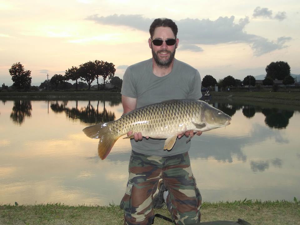 Prima di cena pasturo com un mix di boilies e granaglie e dopo una mezzoretta parte una decisa suoneria bbbiiiiiiiiii!!!!!!!!!! erano i miei sensori che strillavano, corro, ferro e inizia il combattimento, dopo un quarto d'ora riesco a portare a guadino una cicciona da 9 KG, una volta slamata, pesata e fatto le foto di rito, la rilascio con cura tornare nel suo habitat.