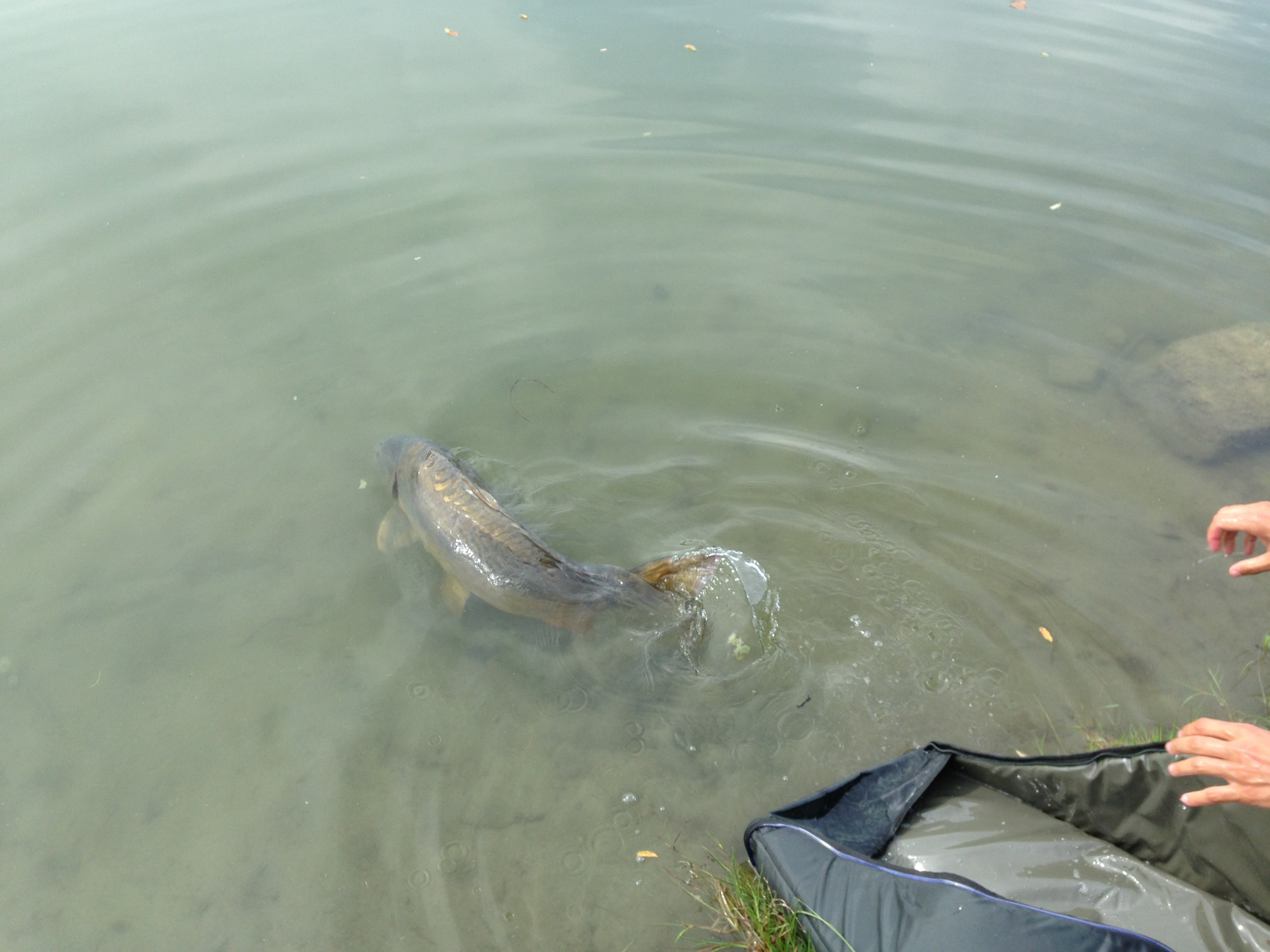 Ci abbracciamo e siamo felici...non smetto di fotografare la carpa, ma è tempo di liberarla...con non poca fatica metto il materassino a pelo d'acqua e la ossigeno...poi ci salutiamo con una vigorosa pinnata sua che mi infradicia per bene! :D
