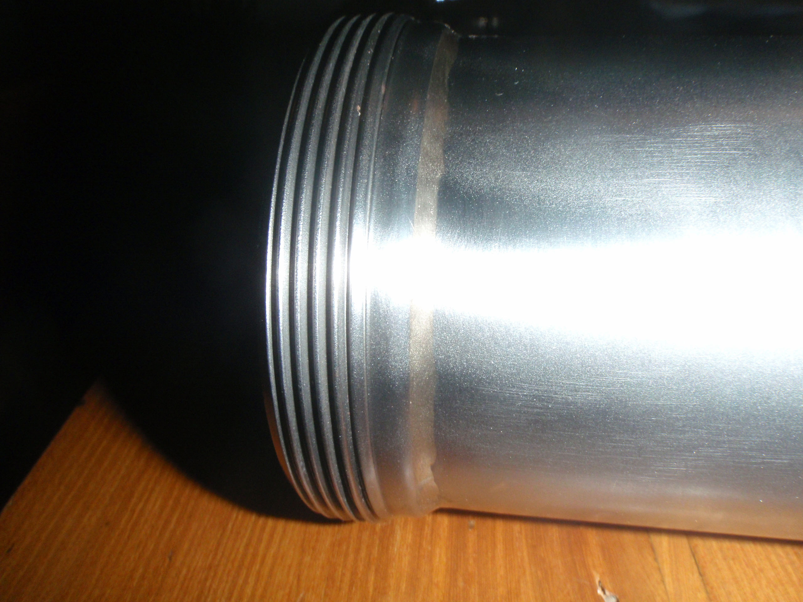 La ghiera filettata per il tappo è saldobrasata e tirata a lucido, ottima la scelta della saldobrasatura in quanto attacca perfettamente e, principalmente, non deforma il materiale evitando possibili inceppi del pistone durante la corsa.