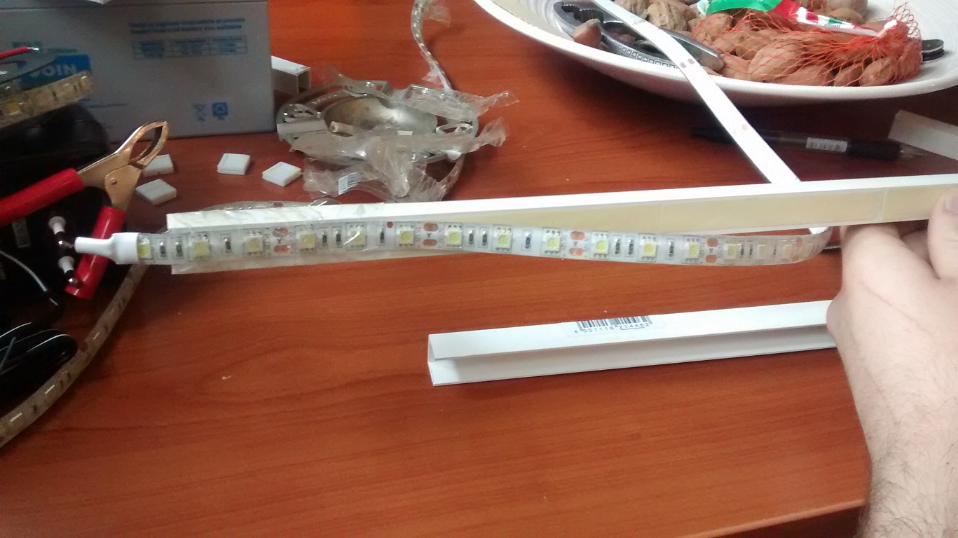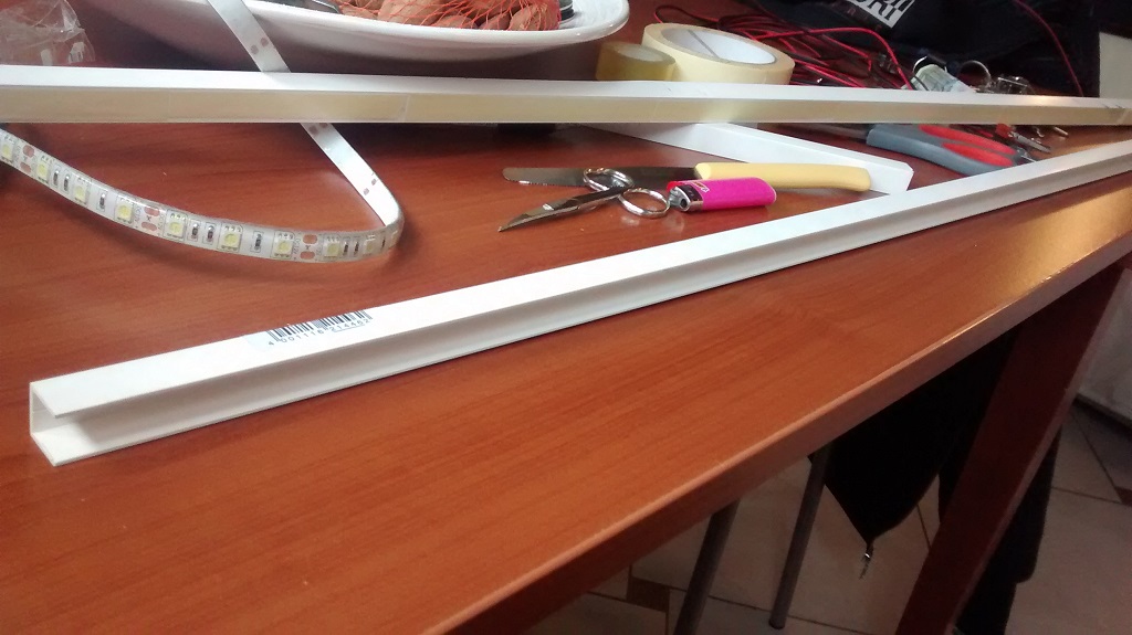 -2 barre di plastica da un metro ciascuna (quelle incave quadrate) (2,30€ l'una) una dovra essere messa allìinterno dell'altra per coprire i fili!