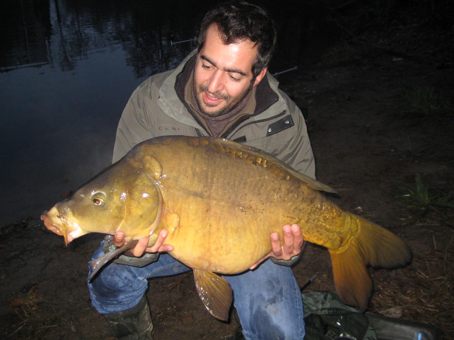 metto il primo sulla canna col mais, il secondo e sento il filo che parte (ho pensato di aver toccato la canna con la gamba e invece è proprio il pesce), ferro e sento un bel peso dall'altra parte. dico a Umberto di montare il guadino vist oche è ancora nella fodera e, come detto prima, meno male che c'è anche lui sennò chissa che casino prendere il guadino e montalro con il pesce in canna!!!!