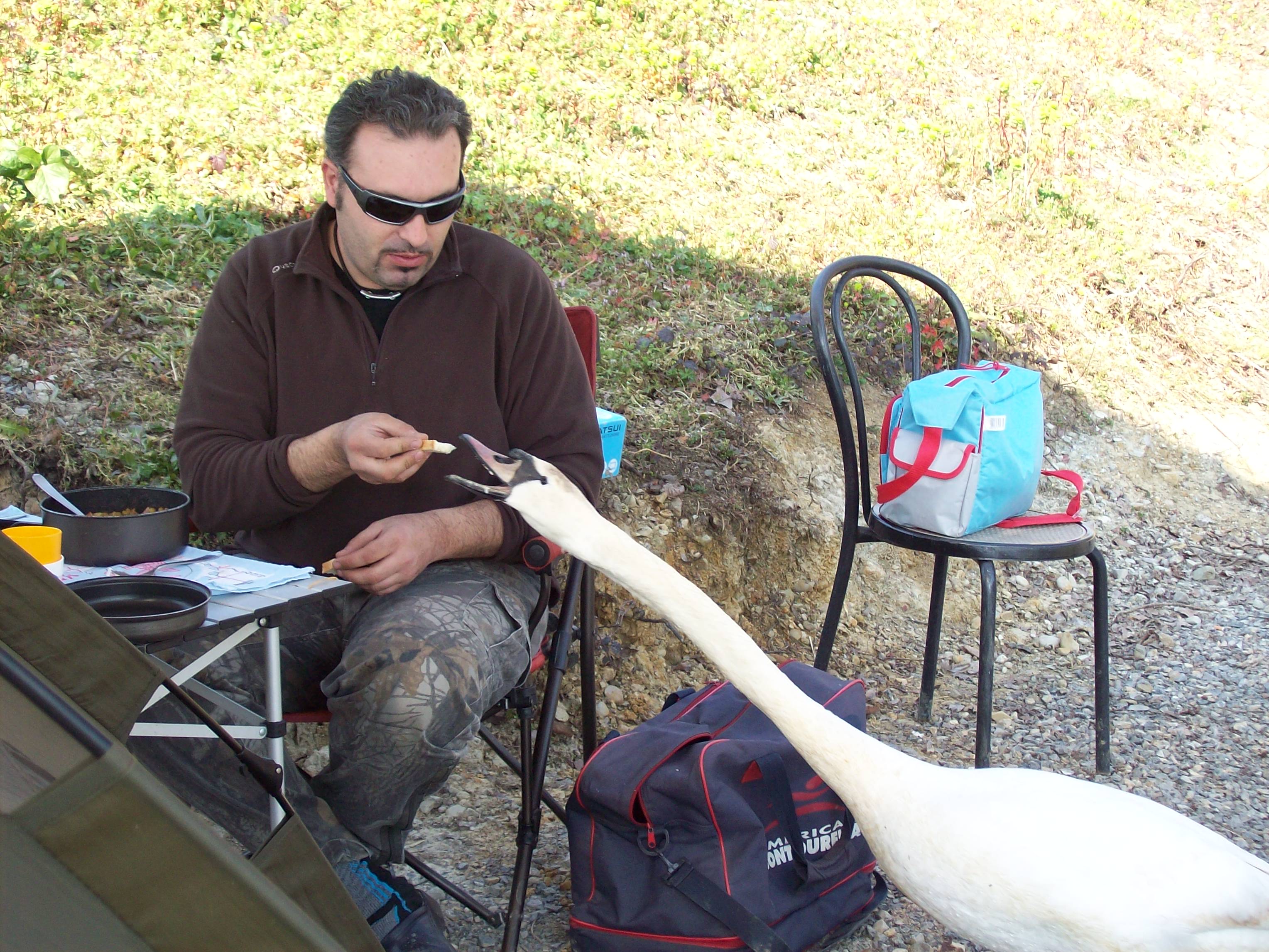 Hahha..è capitata la stessa cosa a Ska su Adda....vi era il cigno che continuava a dare fastidio, passando sotto i fili delle canne, camminado sulla riva in direzione di Ska...e via dicendo...fino a che non se ne è andato...diciamo che è stato invitato ad andarsene...con le buone però! ;)