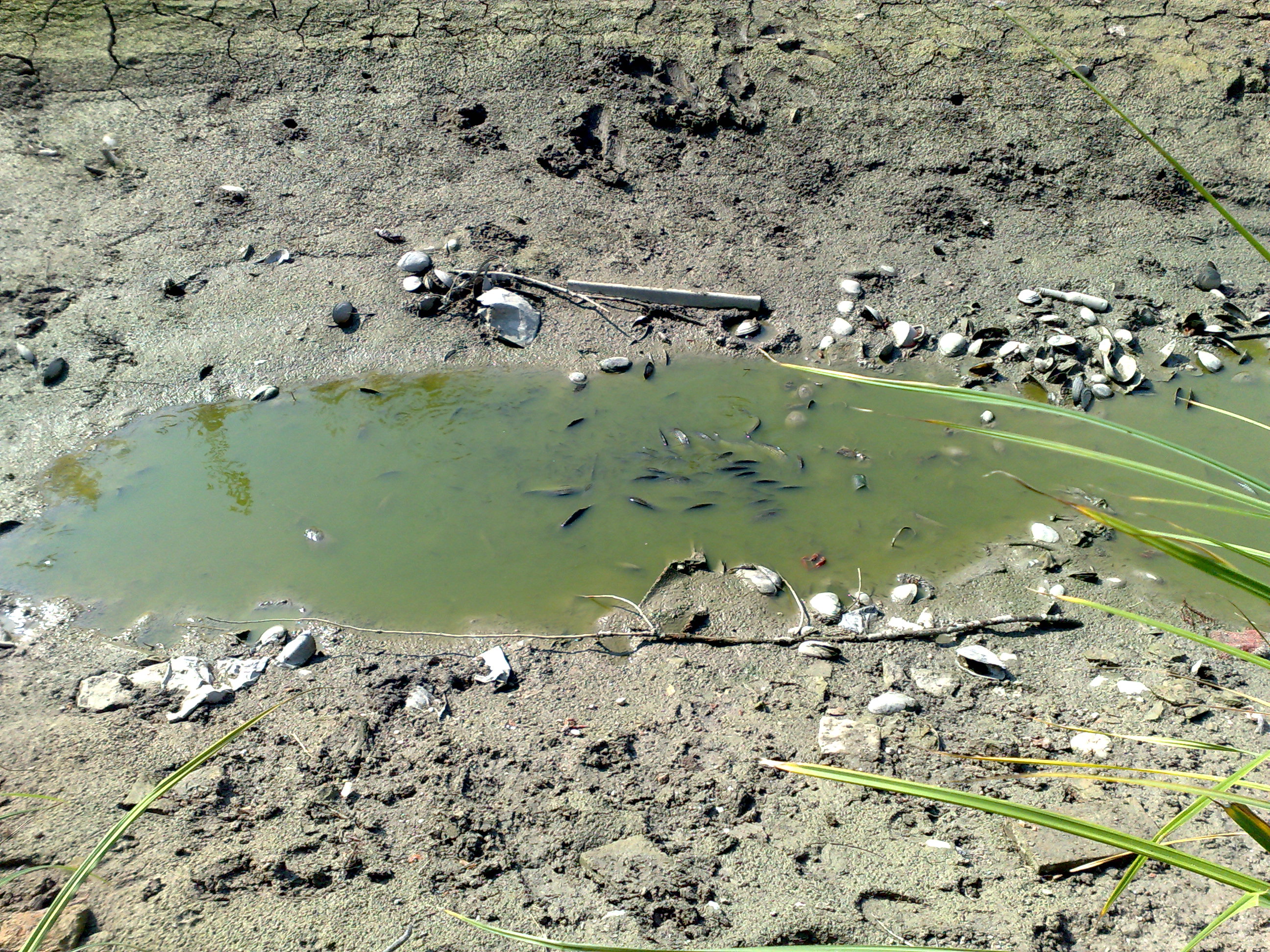 chiudono le acuqe perche sennò evaporano dice l'ingegnere del consorzio acque castellucchio MN , questo è il canale osone nuovo, che prende l'acqua dall'osone vecchio e le reimmette in mincio a curtatone dopo 4 o 5 Km di percorso. E , dice l'ingegnere che lo fanno per preservare la fauna ittica del lago , piu acqua piu pesce dice. Intanto questi sono tutti morti...questi e migliaia di chili in altre pozze lungo tutto il suo percorso.