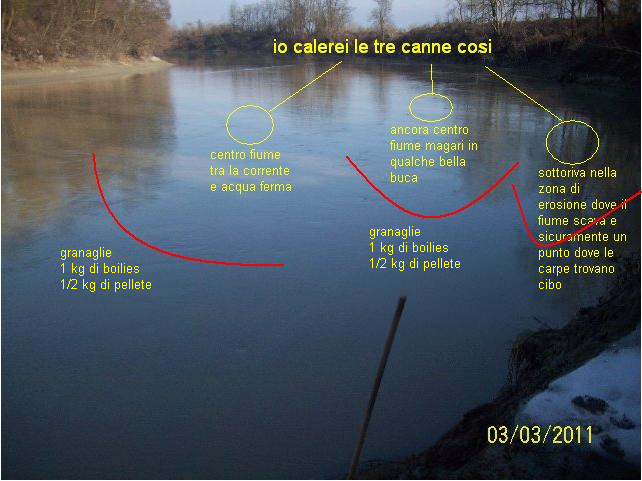 quoto tutto... spettacolo la preparazione di una posta!Max74 ha scritto:Bello spot, il fiume ha sempre il suo fascino, io opterei per l'ansa, se procedi anche con la pasturazione rimane meno in corrente, volevo capire se però intendi pescare sullo stesso lato dove si vede il palo di legno piantato, perchè dovrebbe essere quella la parte piu fonda...