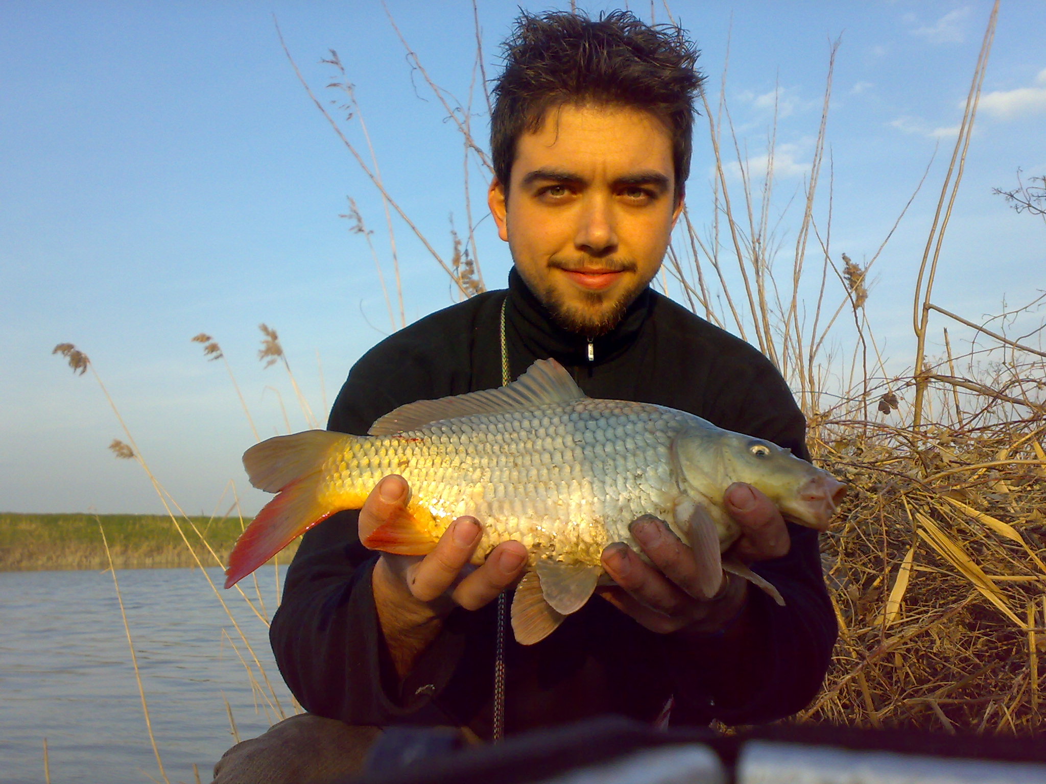 ho visto poi un punto del tratto da ponte Zanolini, nel lato verso monte, per intenderci che va verso Marmorta, sulla sponda che da le spalle al Lorgana, li c'è a parte la posta sotto al ponte, un'altra posta 100mt più avanti, dove per altro ho pescato un'oretta abbondante, poi proseguendo è tutto con canneti, dai quali volendo si ricaverebbe a mio avviso un'altra posta, forse anche migliore. La cosa che un po' mi ha stupito, è che dal punto dove ho pescato, c'erano non meno di 10/15 metri con non più di 20cm d'acqua, poi comunque nel punto dove pescavo a 20/25mt da riva ci sarà stato mezzo metro d'acqua non di più. considerate che oggi ero in versione passata con bolognese 6mt, comunque vuoi le belle giornate, vuoi la corrente che fa muover di più il pesce, c'era un gran saltare di pesci! risultato della mini pescatina, la mia prima carpa in acqua libere del 2010!!! piccolina eh, ma indiavolata come non mai! eheh