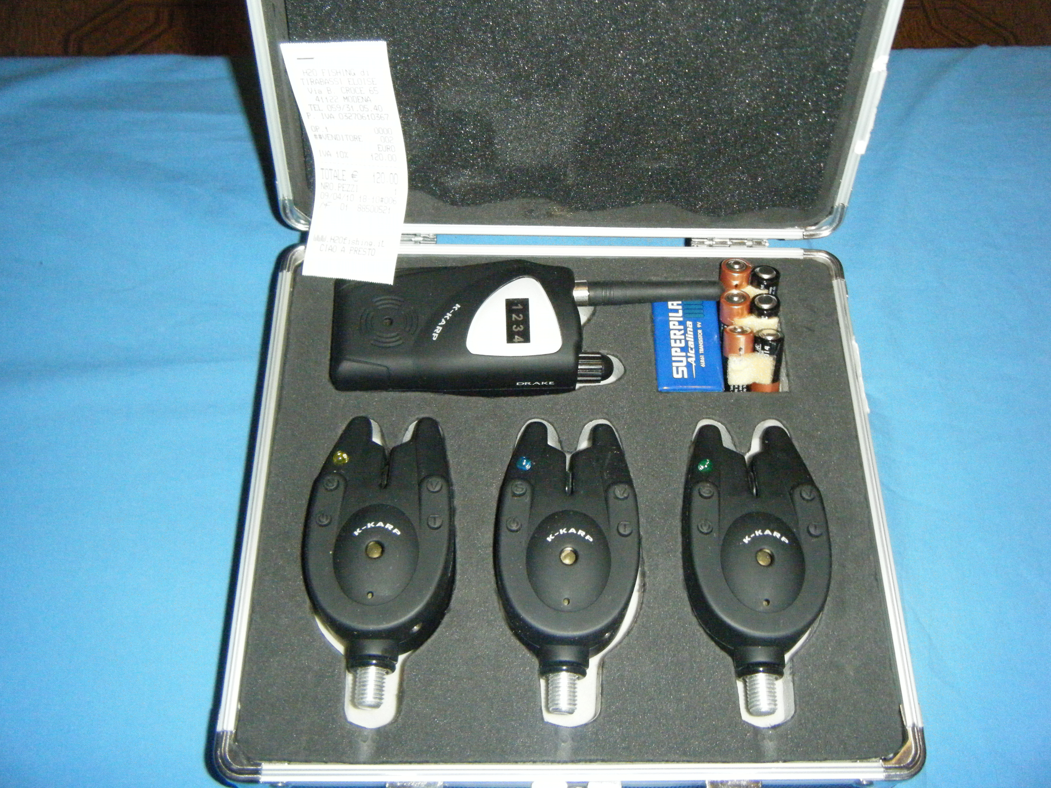 Vendo set 3 segnaslatori + centralina Wireless K Karp modello Drake. sono gli ultimi nati , sono stati acquistati il 9 Aprile del 2010 presso un negozio da me... pagati 120€ hanno 10 pescate si e no... dimostrabile il tutto da SCONTRINO allegato alla vendita quindi in completa garanzia.